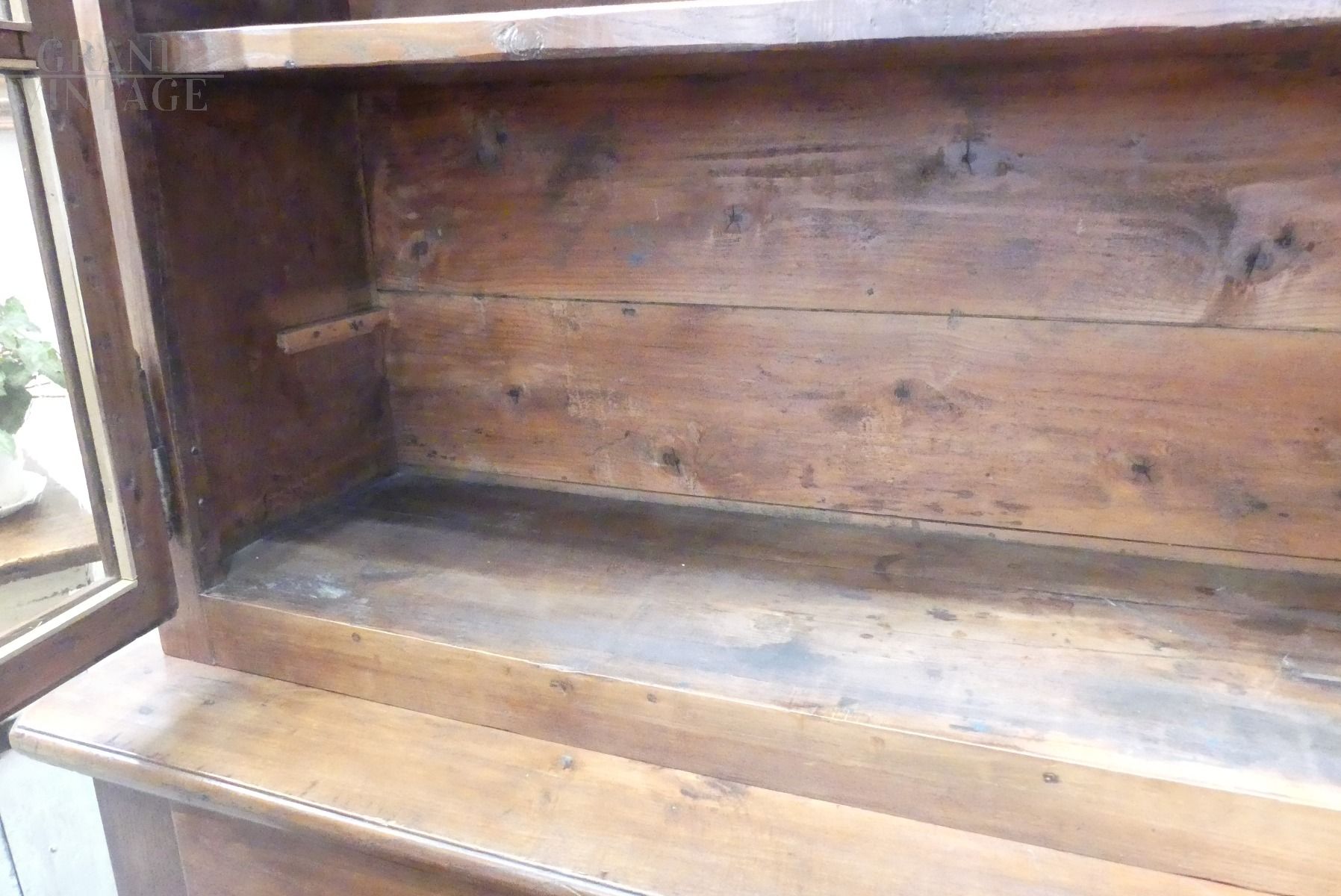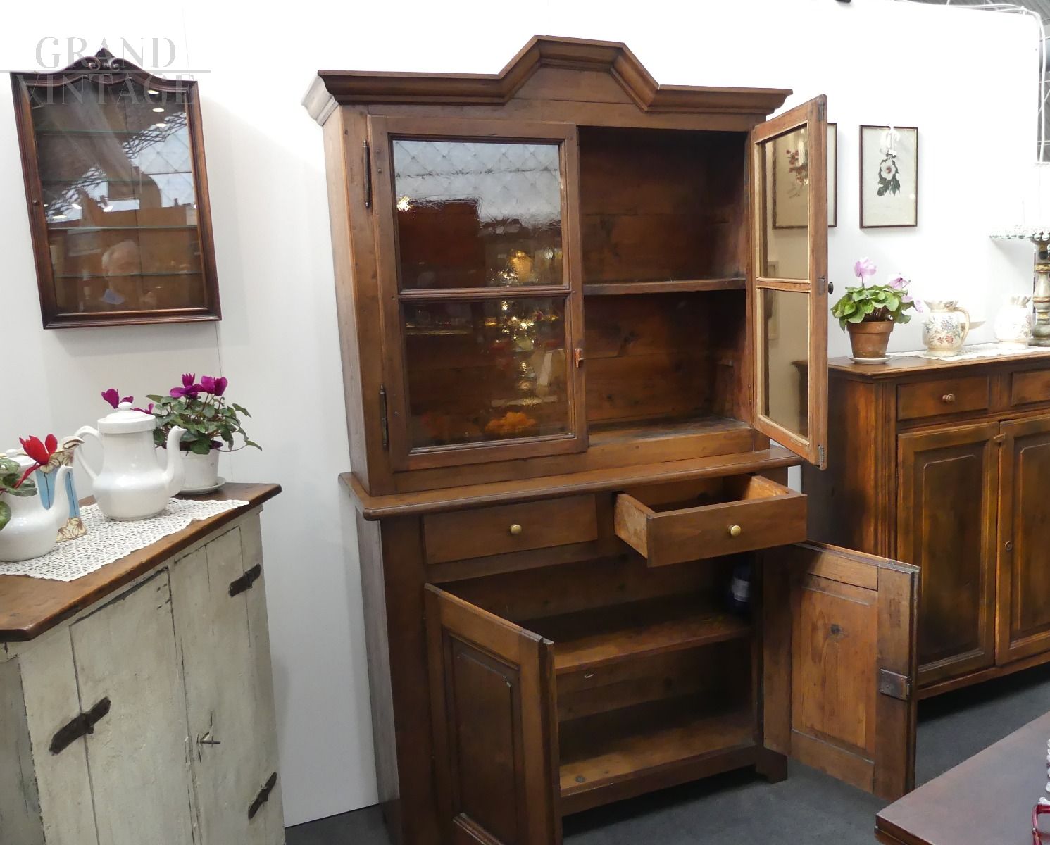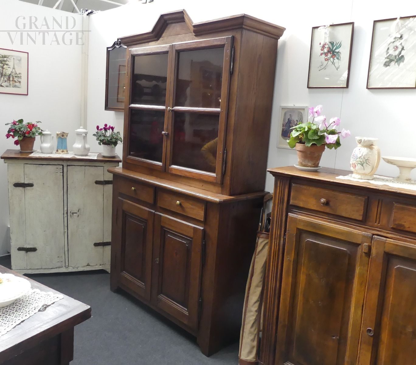 Antique sideboard with upstand in chestnut wood, from the mid-19th century, Lombardy.