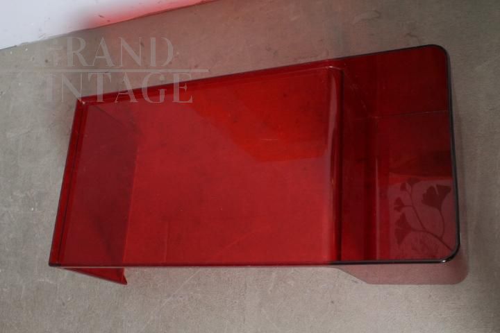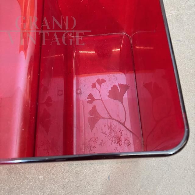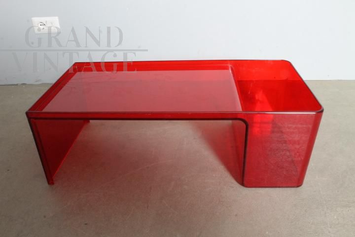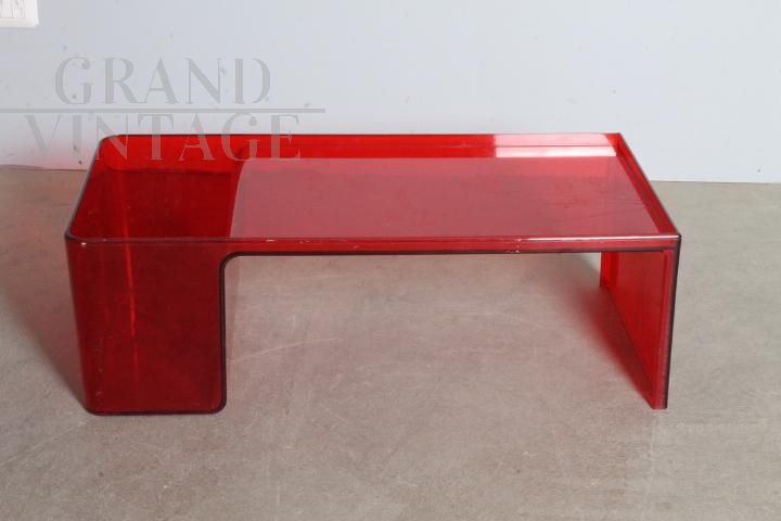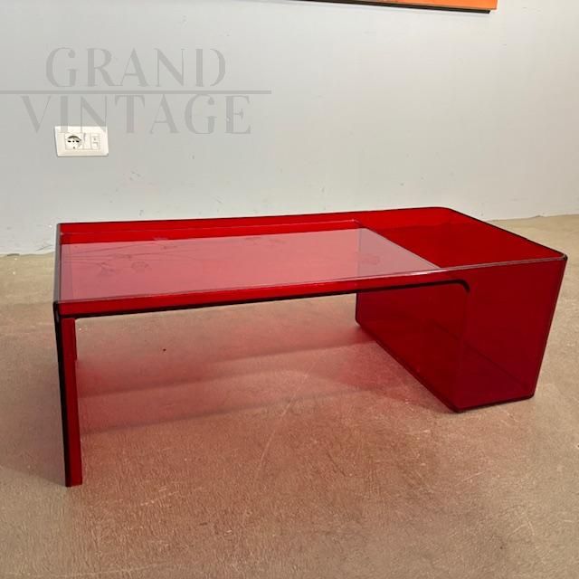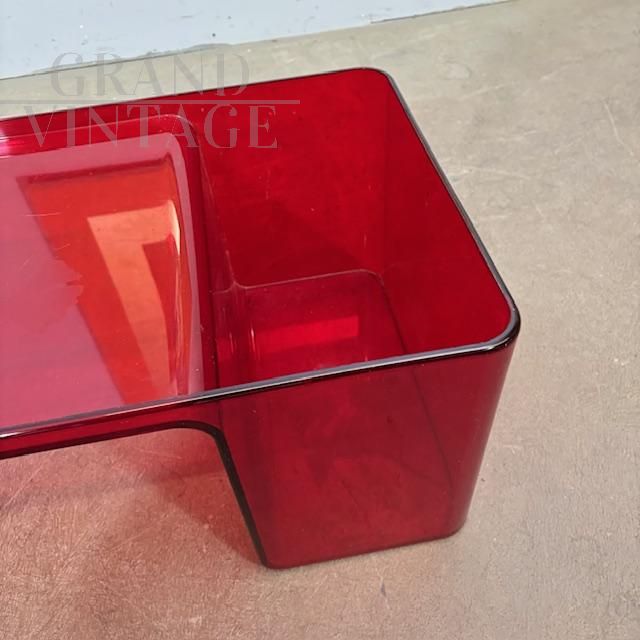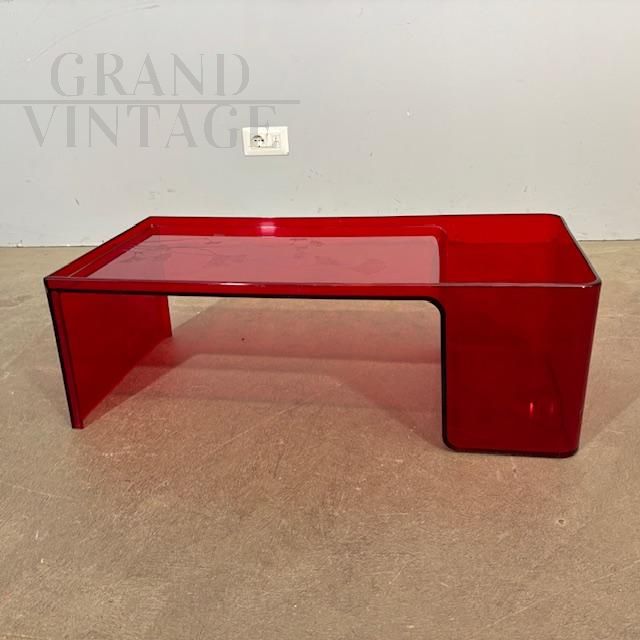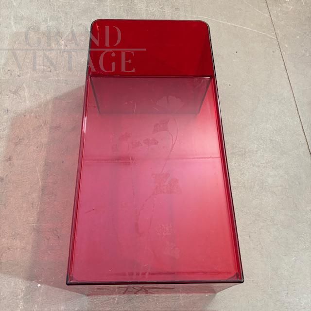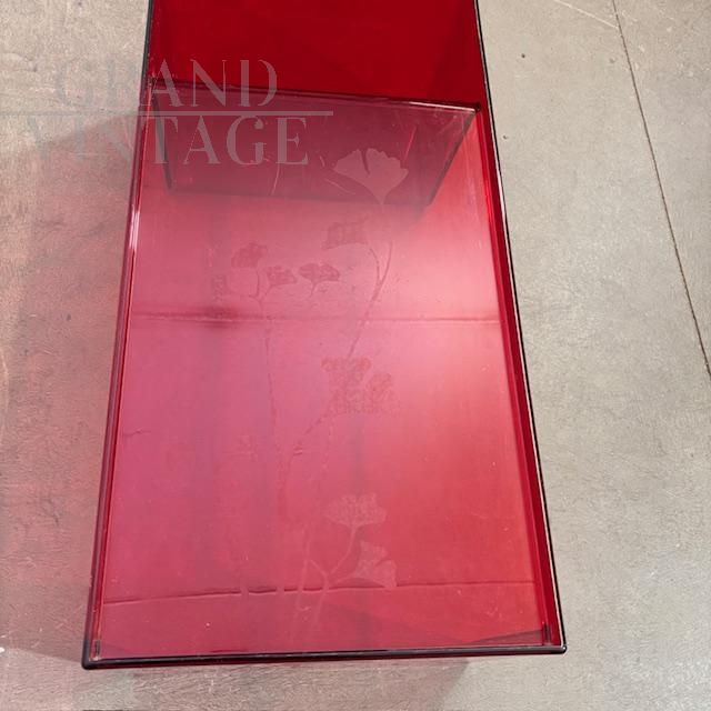 Usame model coffee table with magazine rack, designed by Patricia Urquiola for Kartell Italy in 1980, made of red plexiglass with engraved floral decorations. Little used, the table is in very good condition, showing the normal signs of aging.
