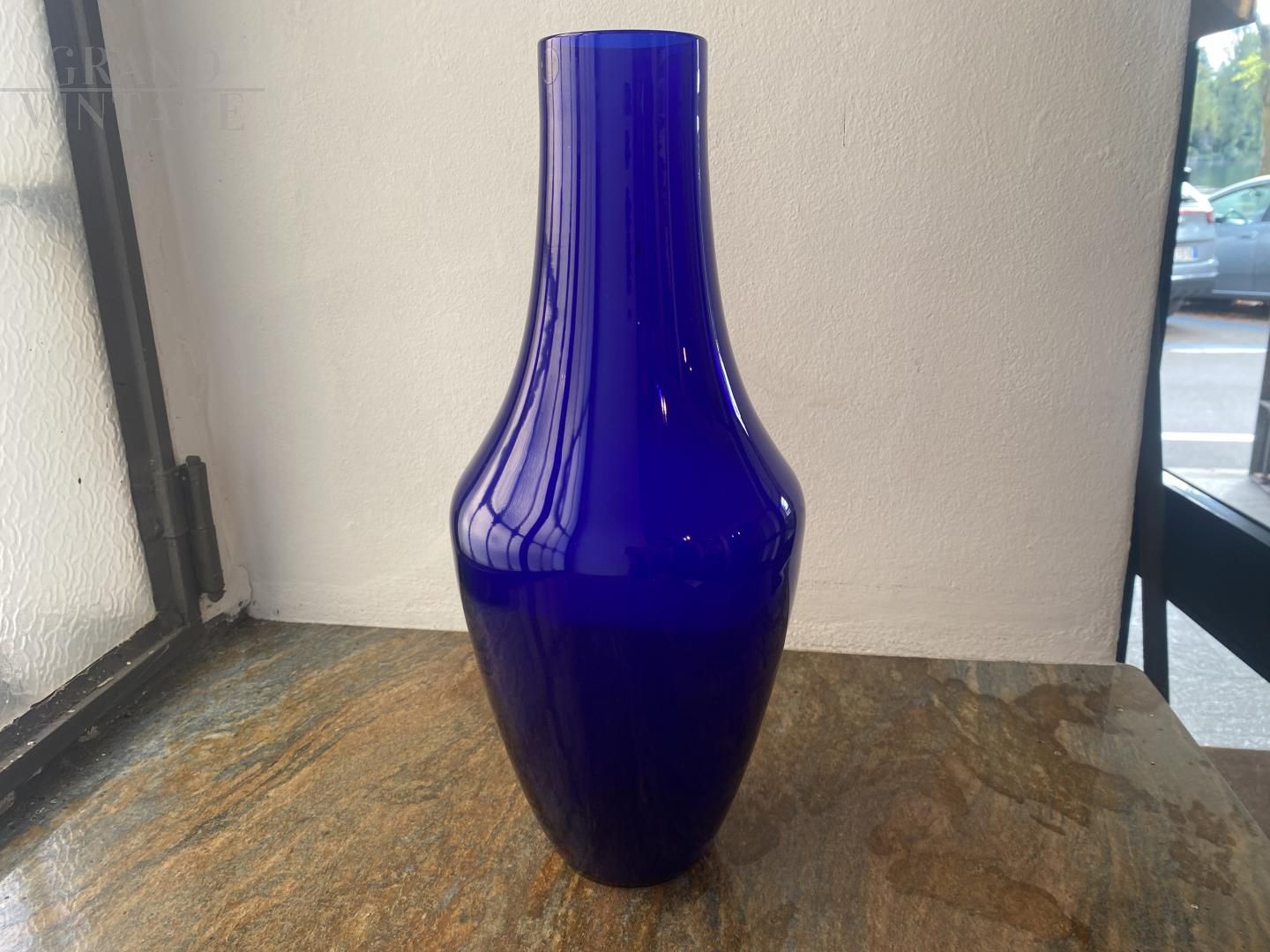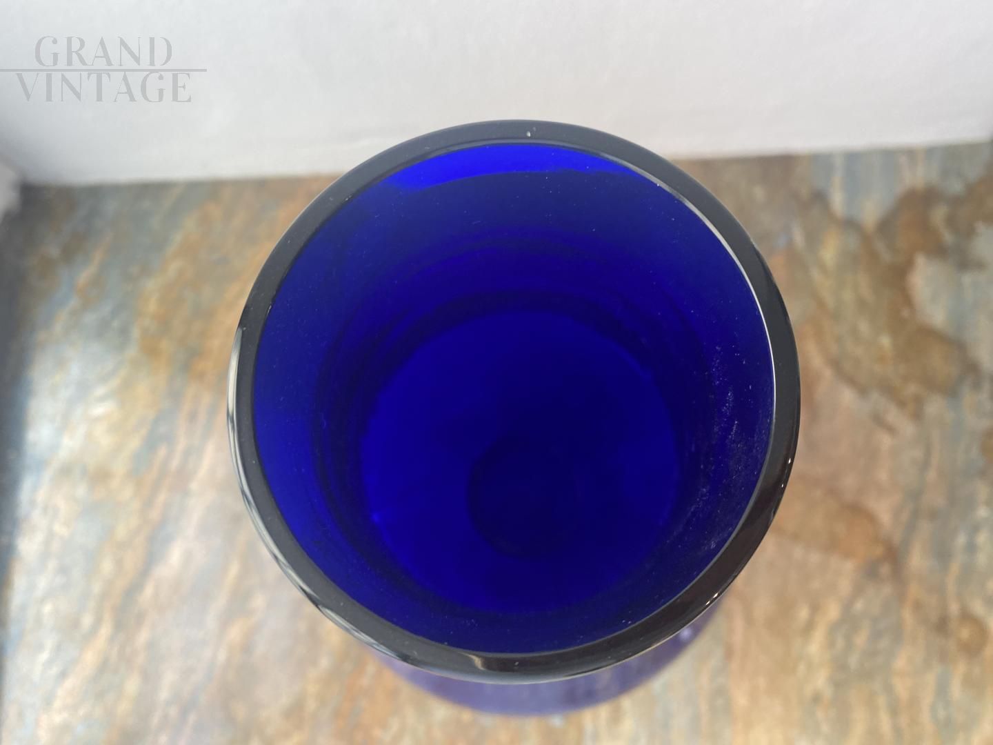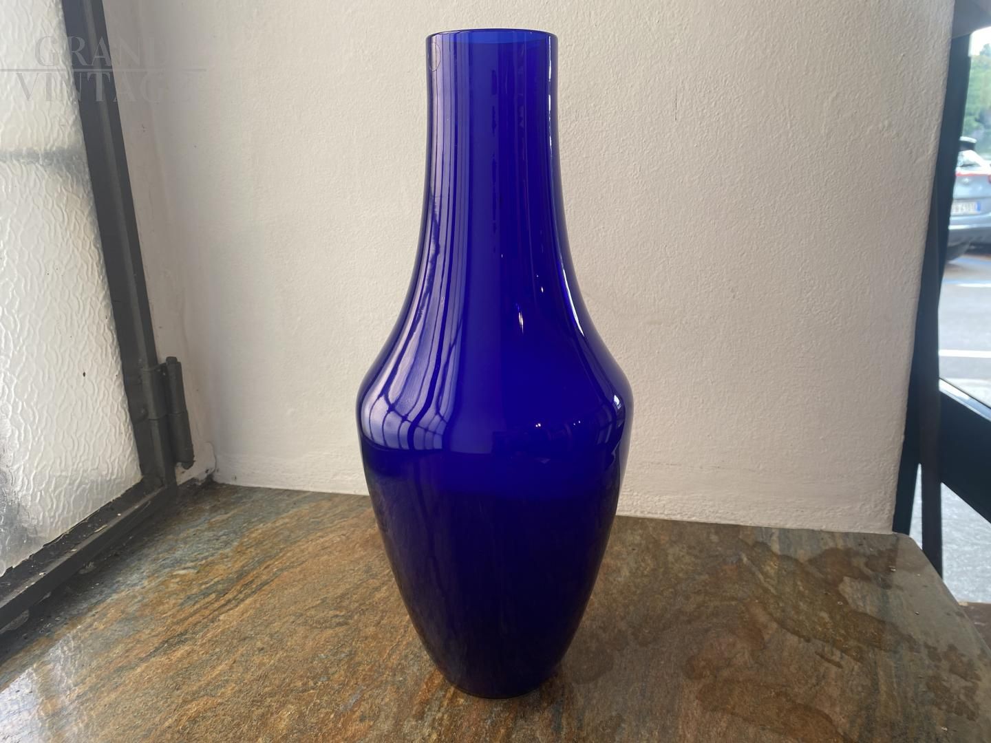 Beautiful collector's vase in ultramarine Murano glass, model EOS 88, signed by Laura de Santillana and produced by Venini. In excellent condition.