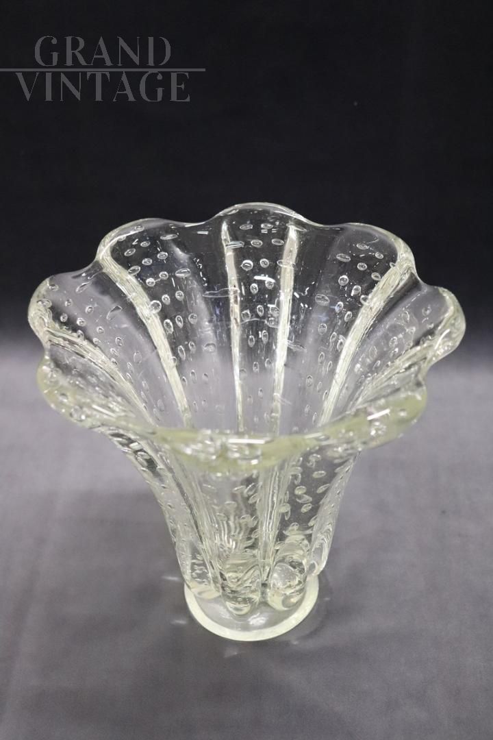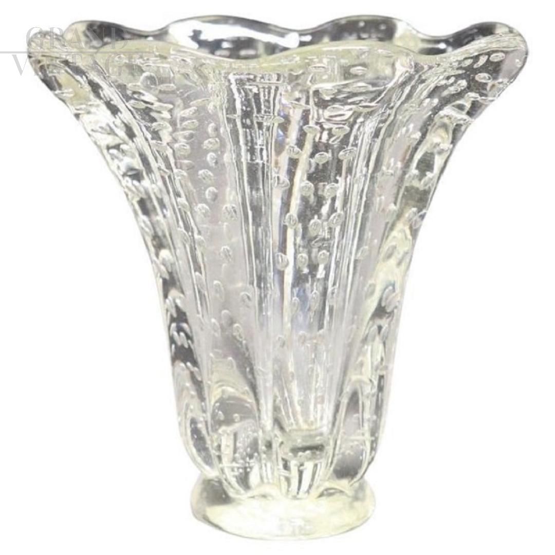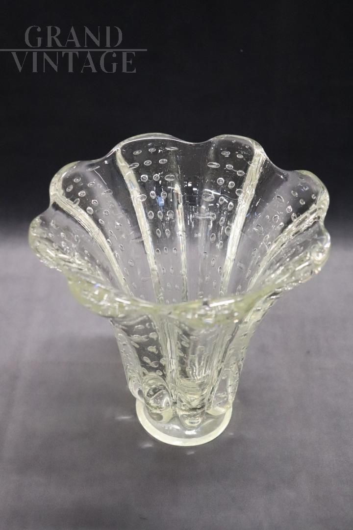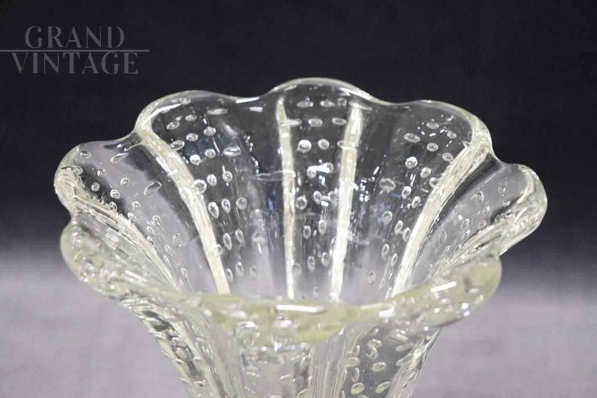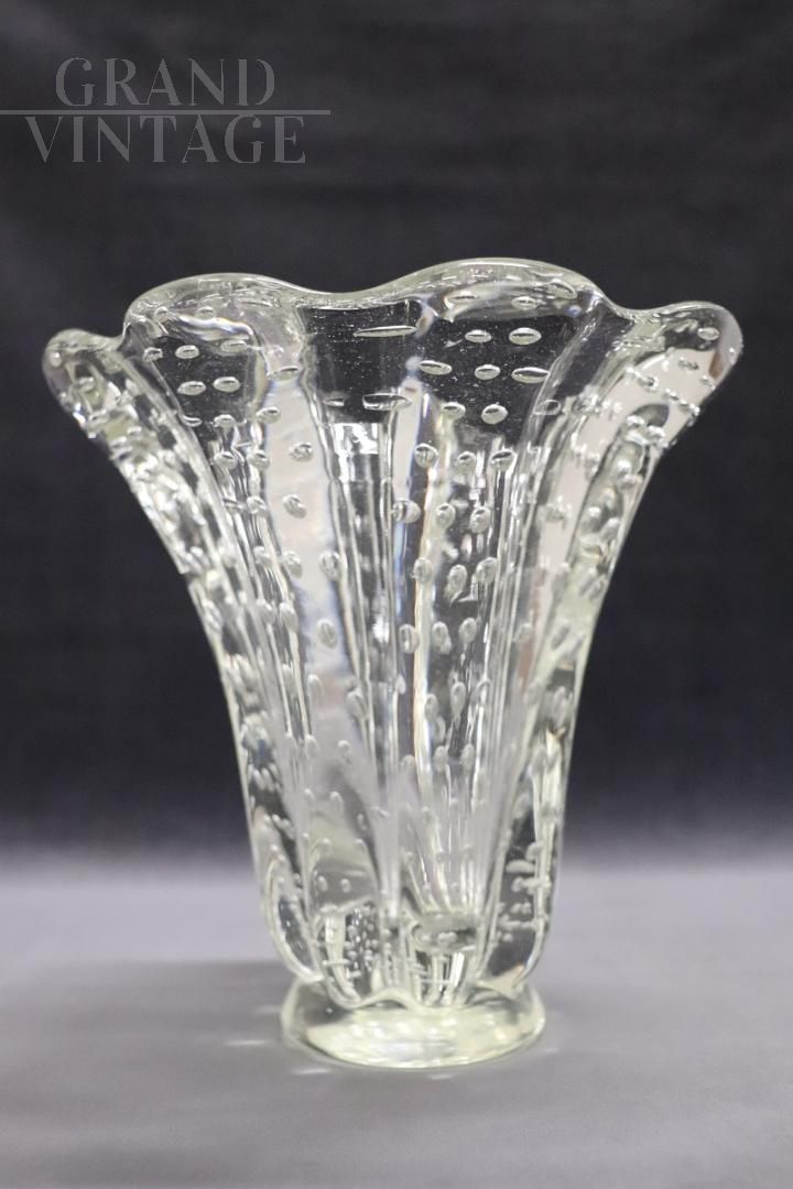 Vase in transparent artistic Murano glass with bubbles, 1950s