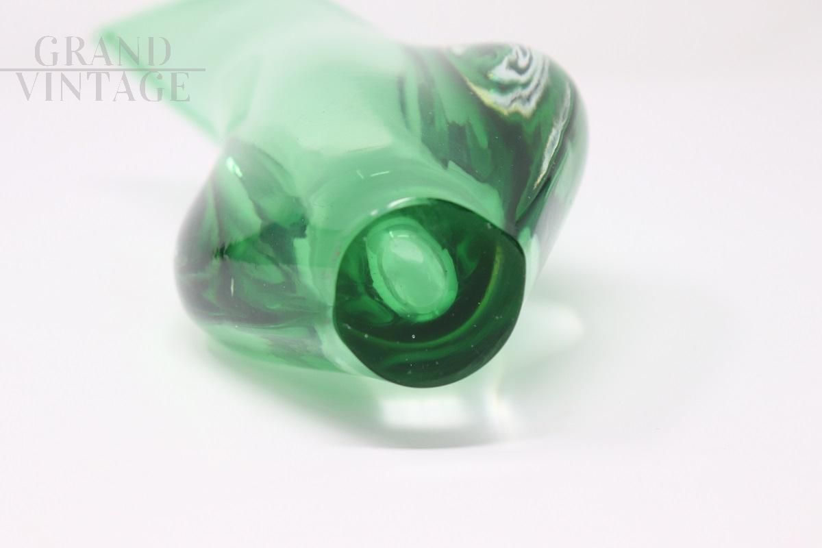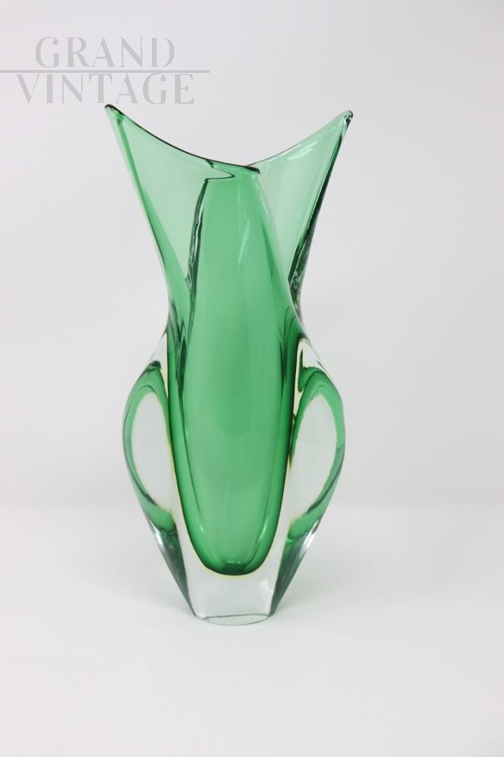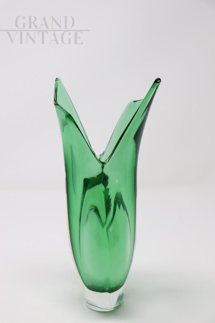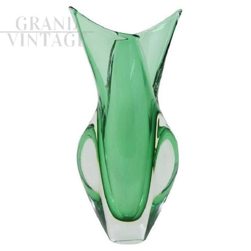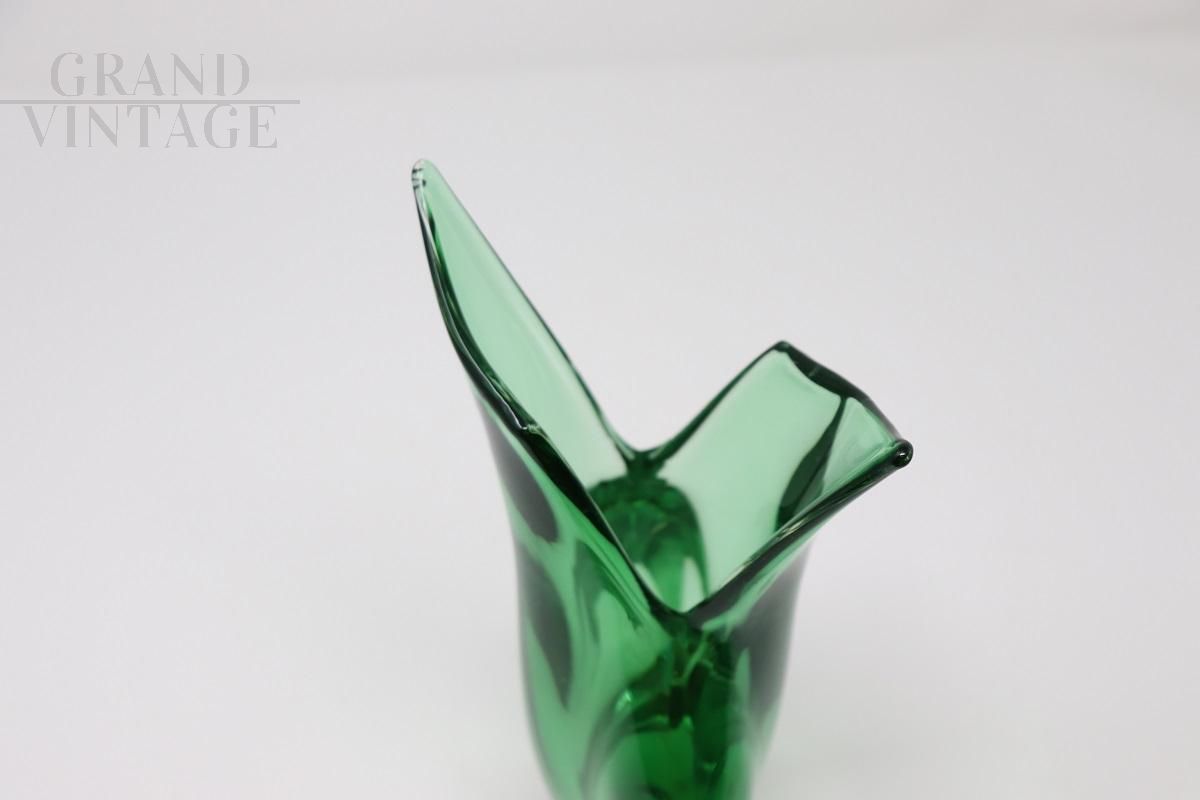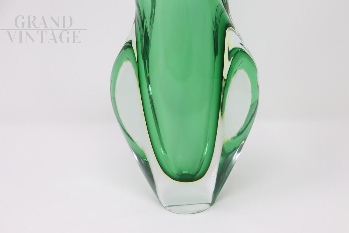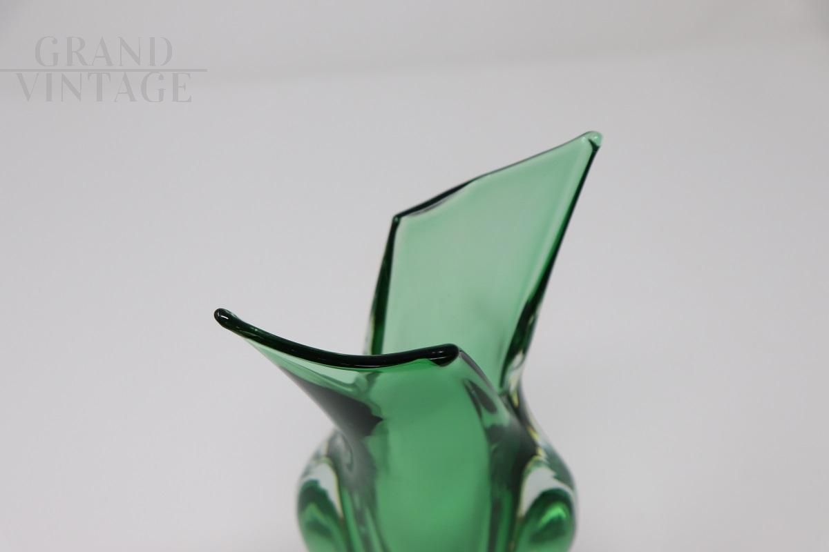 Vase with sinuous shapes in green submerged Murano glass, Italy 1960s