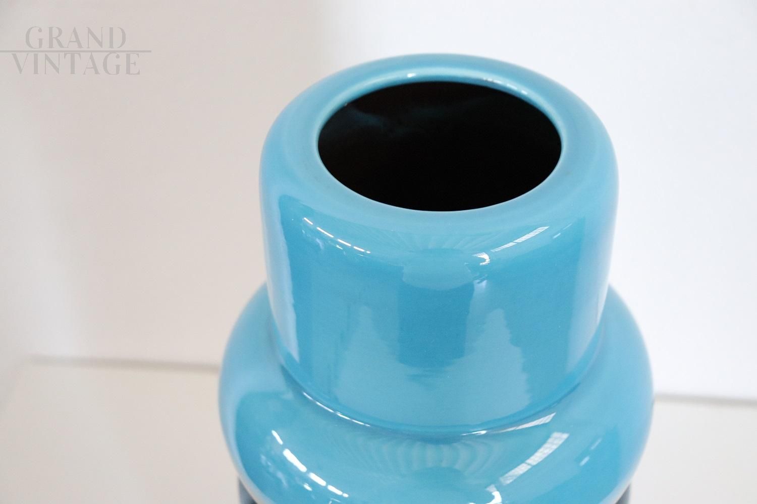 Refined vase in polychrome glazed ceramic in shades of blue and brown, ideal as a piece of furniture for modern and vintage settings.