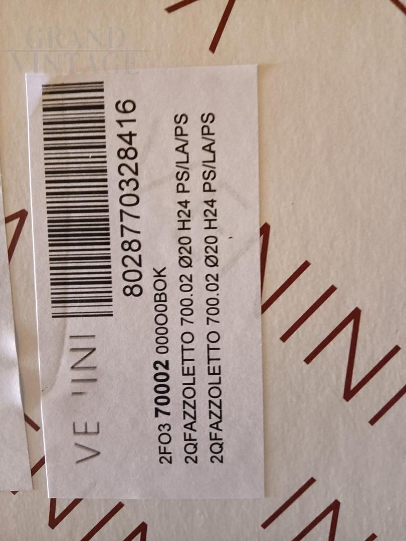 Beautiful handkerchief vase by Venini in peach-coloured opaline Murano glass, an icon of Italian glass design art. New with original packaging.