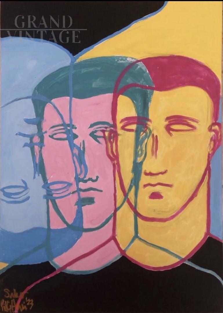 Painting created in 2023 with oil and tempera on canvas by the Sicilian artist Salvo Pillitteri (1979) entitled Vertigo. A work with well-defined lines capable of blending the Urban art of the 80s with the modern and contemporary canons of today. Painting with certification of originality signed by the artist.
