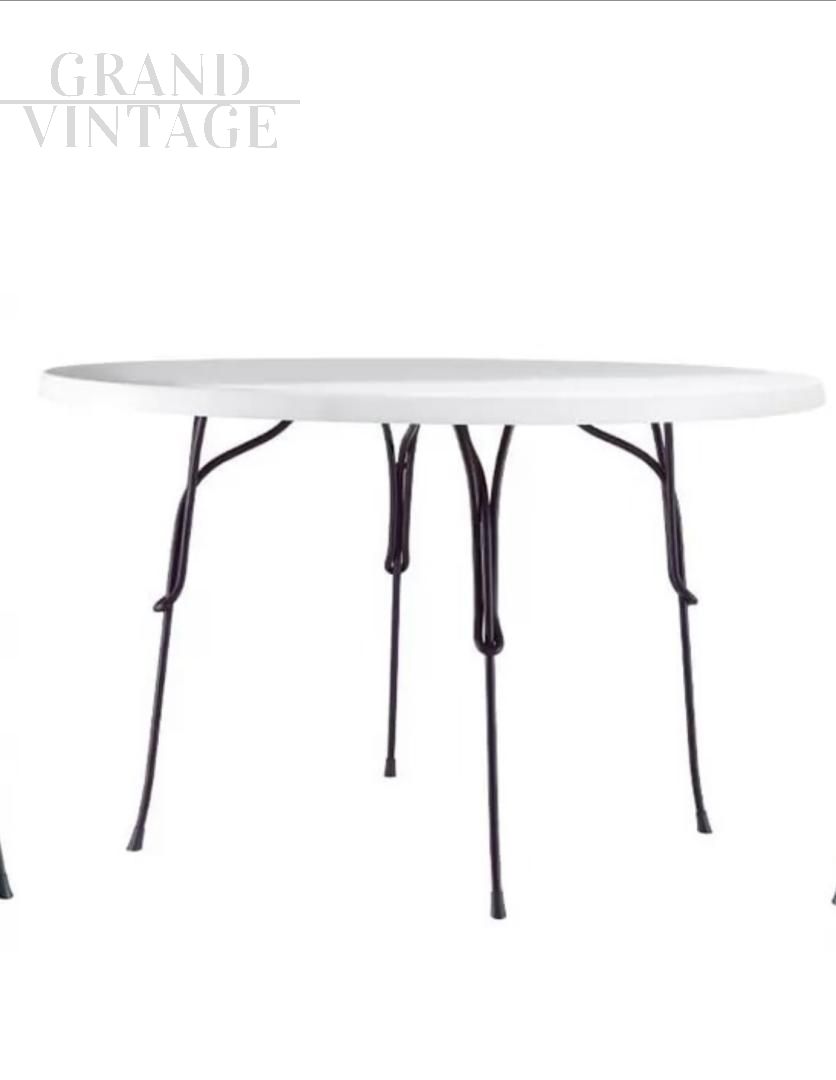 Vigna table designed by Martino Gamper for Magis, has a very simple appearance, reminiscent of the classic tables found in the countryside, in the vineyards, but at the same time it clearly stands out from this classicism thanks to the particular colors in which it is available. Furthermore, the weave in the steel of the structure refers to the knots of the vines, and this is where the name of the model comes from.