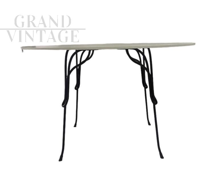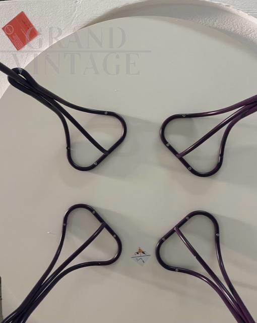 The top is in Werzalit plastic, the structure is in cataphoresis-treated and polyester painted steel rod, and it is also available in violet and purple colours.
