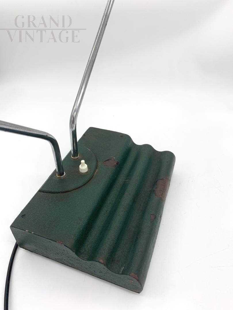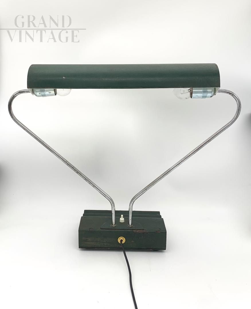 Fantastic and rare vintage 1950s table lamp in lacquered metal, electrical system redone with switch on the base of the lamp. In good condition, with some natural signs of aging. Requires 2 bulbs with E27 socket. We remain available for any information.
