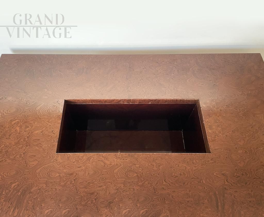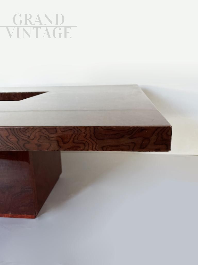 Special coffee table in Aldo Tura and Willy Rizzo style, made entirely of briar and with a useful rectangular slot in the center.