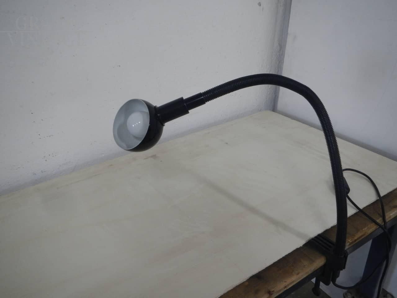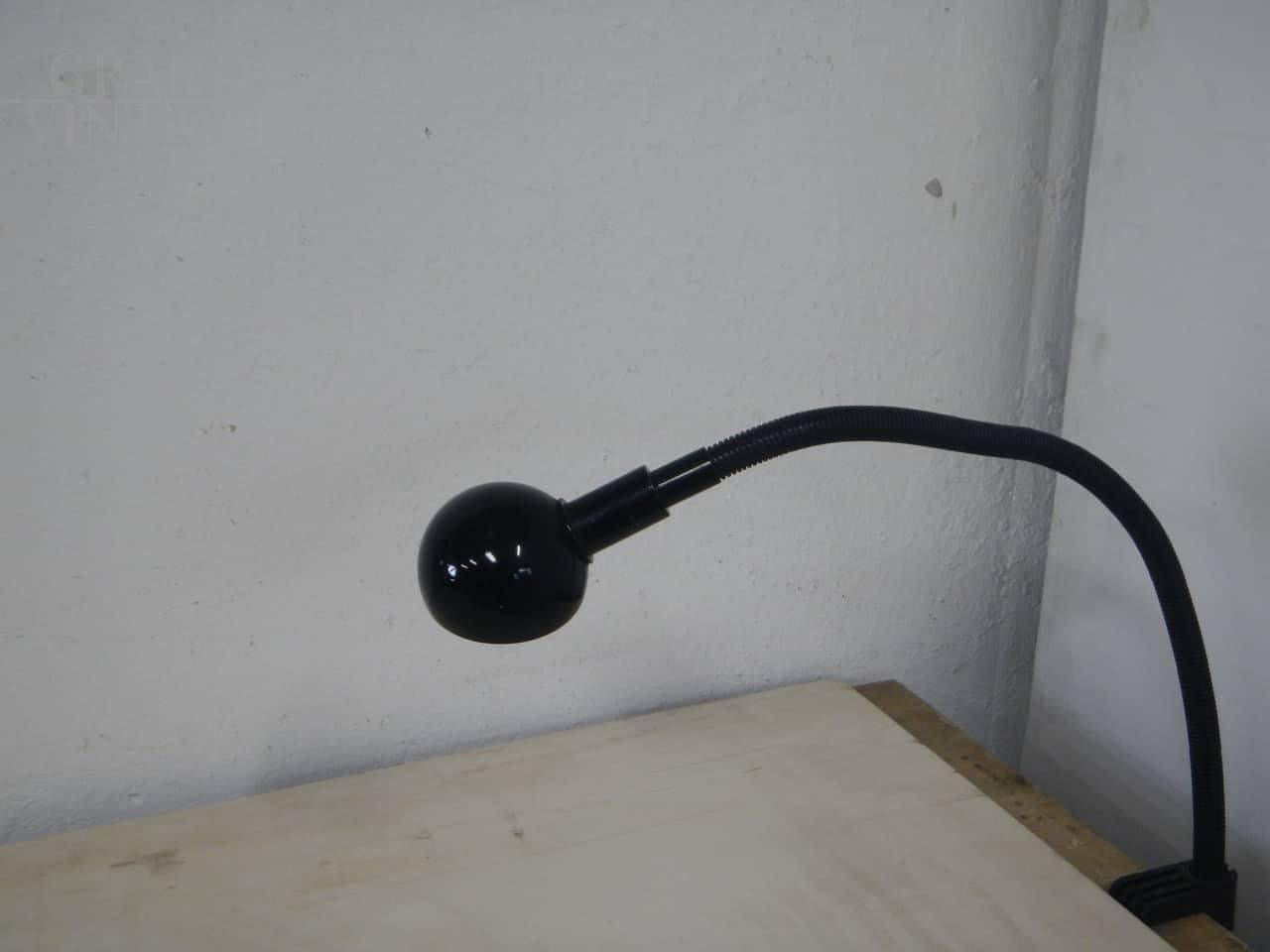 Vintage adjustable clamp desk lamp by Valenti Luce in black metal and plastic, Milan 1970s. The lamp has a plastic attachment to fix it to the table. In height it is adjustable from 20 to 60 cm. In good condition and working.