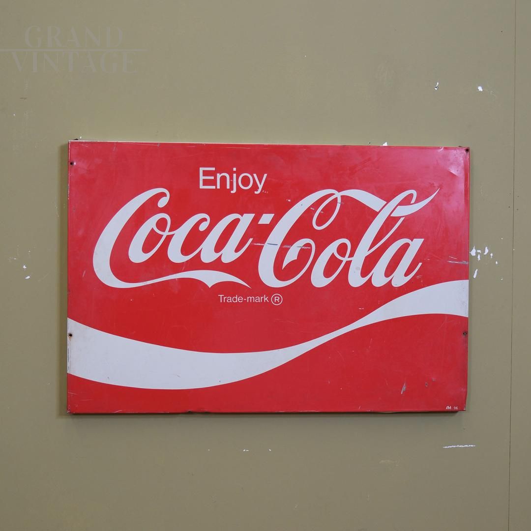 A great classic of advertising collecting, this original historic American sign with the white Coca Cola logo on a red background, ideal for enlivening any environment with a timeless icon of vintage style.