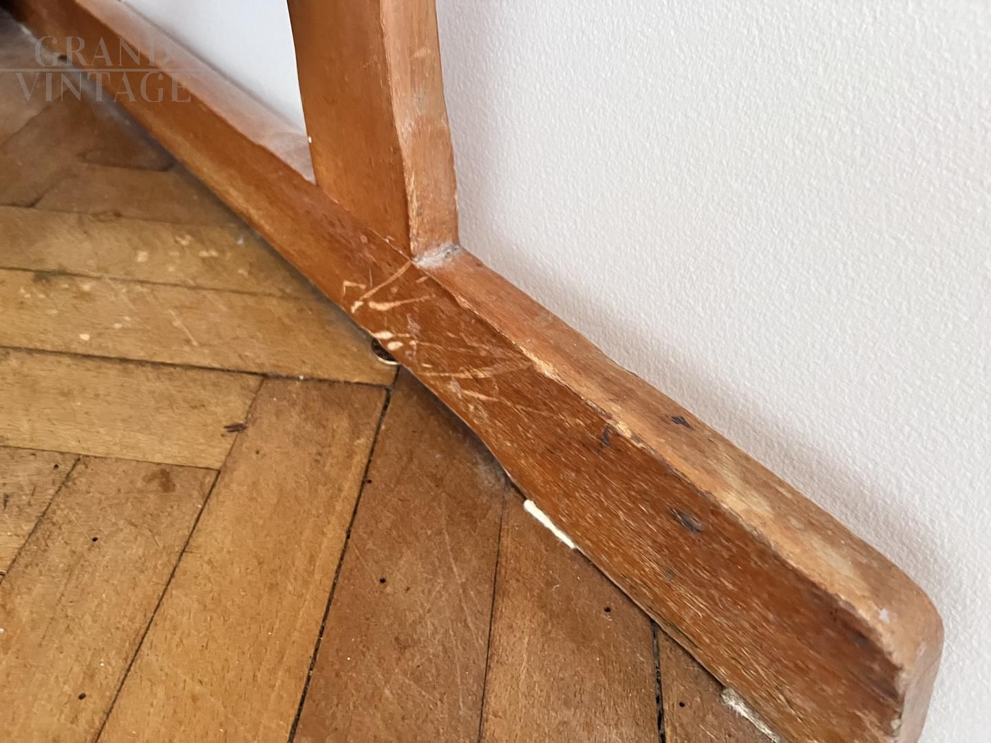 The drawing board is in good condition, complete with pencil holder on the side, but the ruler is missing. The surface of the table appears to have been treated with a varnish at a later date. The table tilt mechanism with the wheel has not been tested, it may not work. The structure shows some signs of aging, in particular worm holes on the base and scratches, as shown in the photo. The top is healthy and shows no signs of woodworm. The drawing board has been treated with an anti-woodworm product.