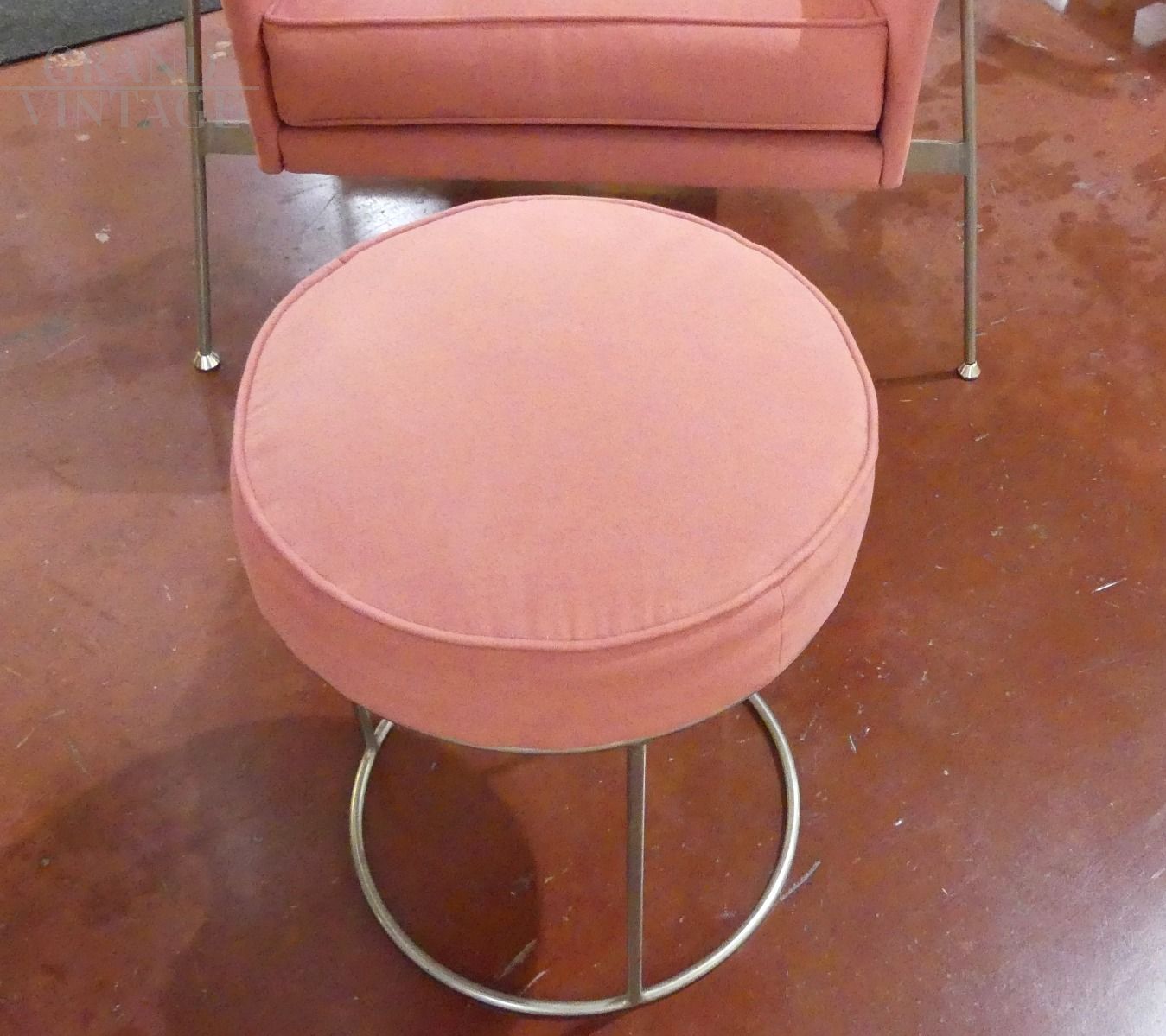 Poltrona vintage in ferro e vellutino rosa con pouf