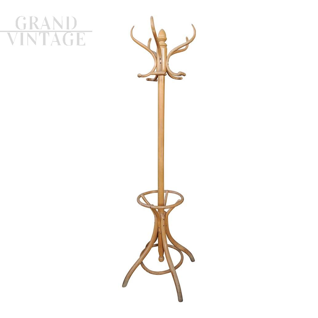 Vintage Austrian coat stand with umbrella stand in bent beech