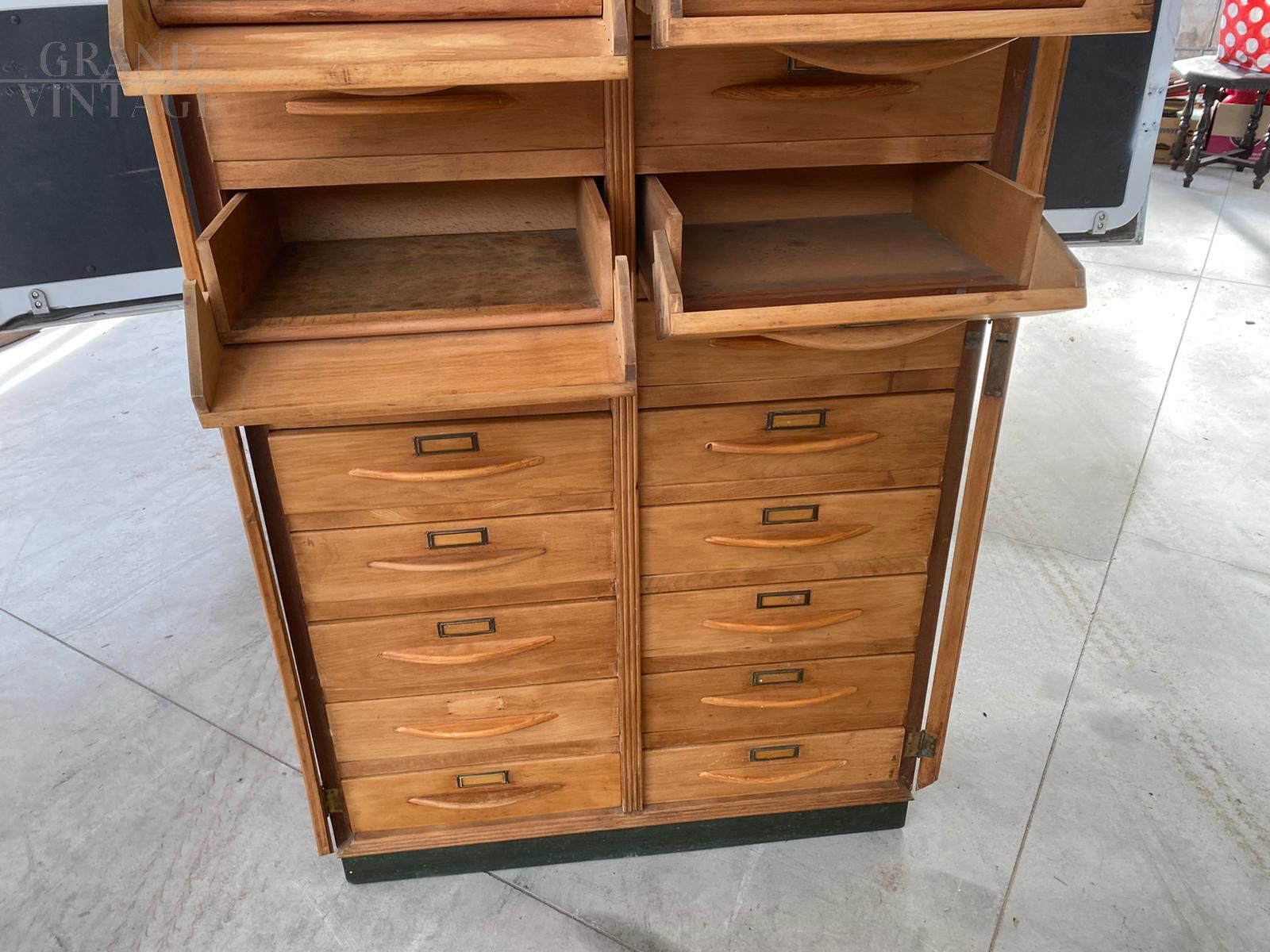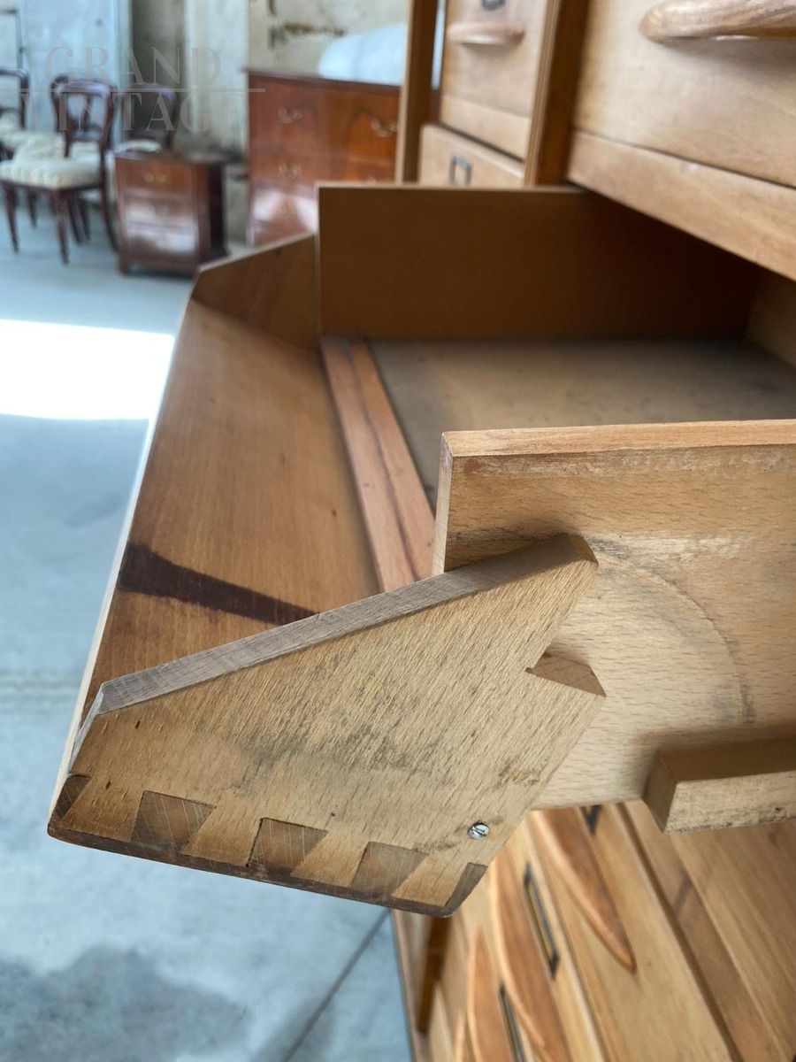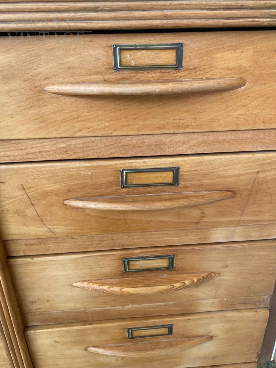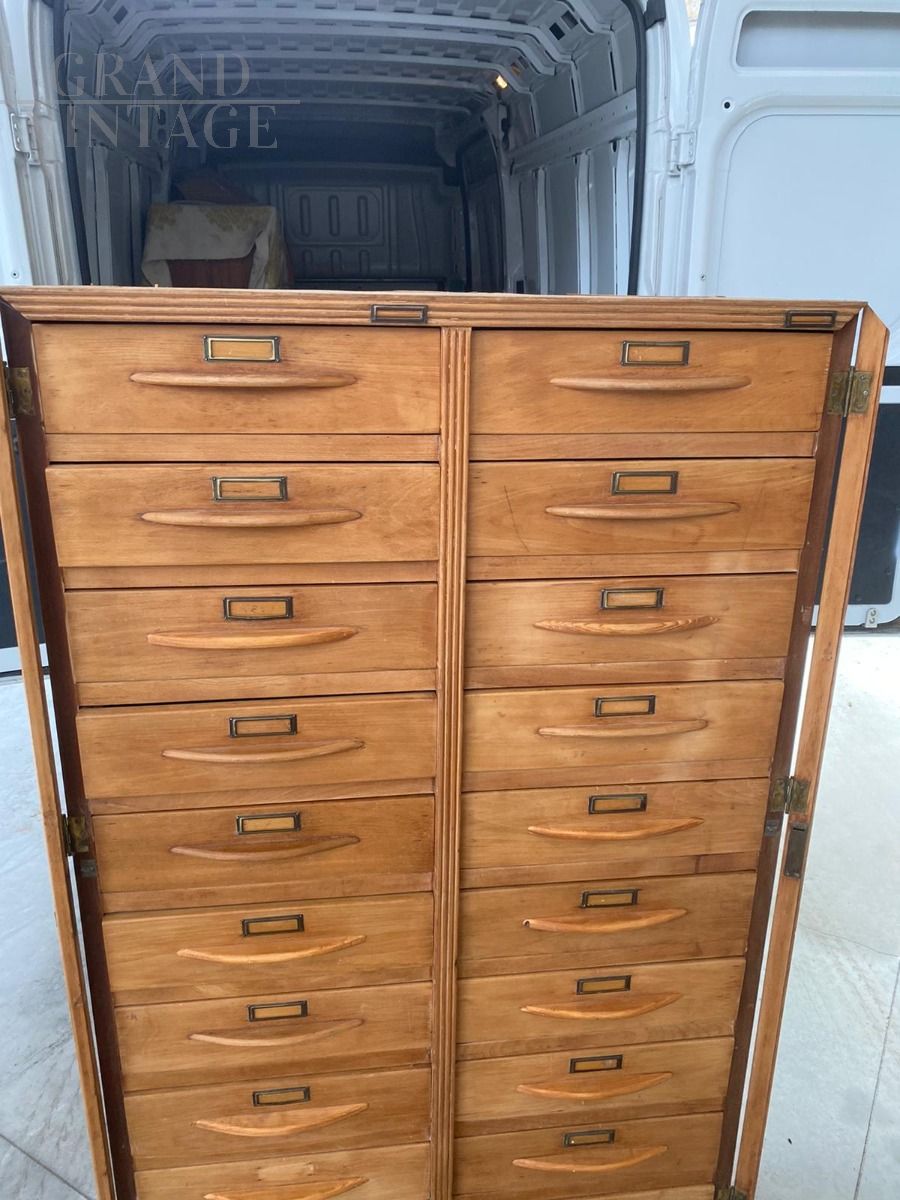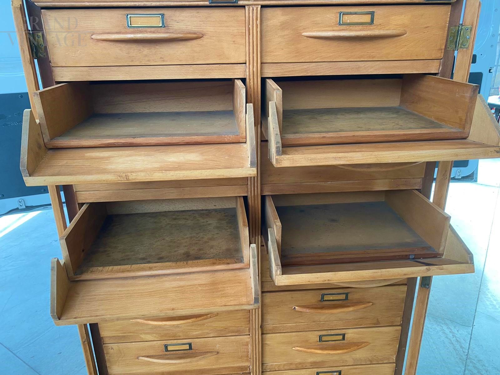 Superb antique filing cabinet in beech wood, of great workmanship and in excellent condition, built by the Alasia Gian Remo Turin firm.