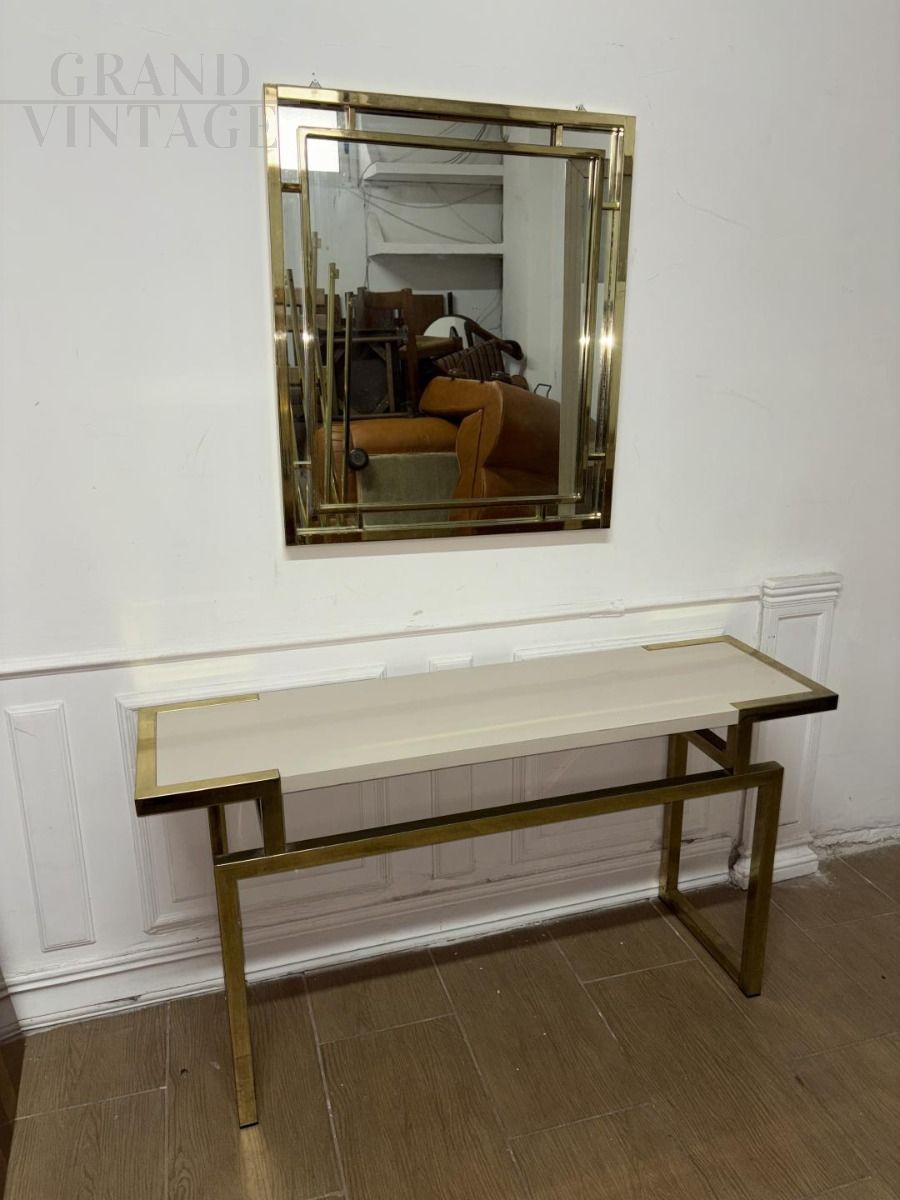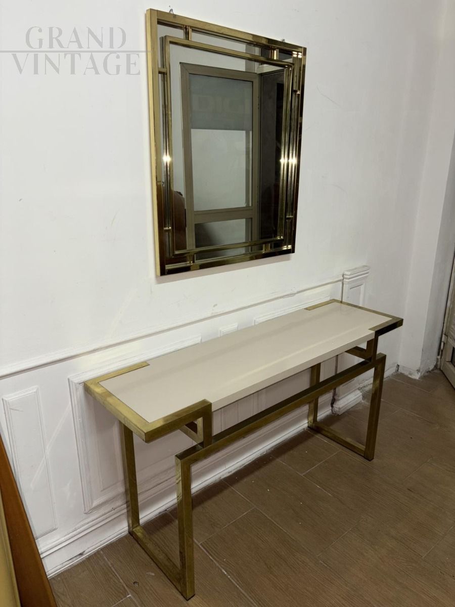 Romeo Rega style entrance console with mirror in gold brass, excellent quality, Italian design 80s