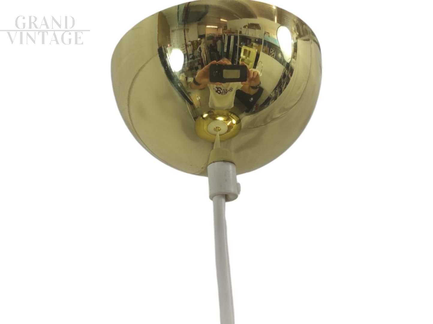 Vintage pendant light in gold brass from the 70s, in excellent condition, has a slight mark on the cup reported in the photo.