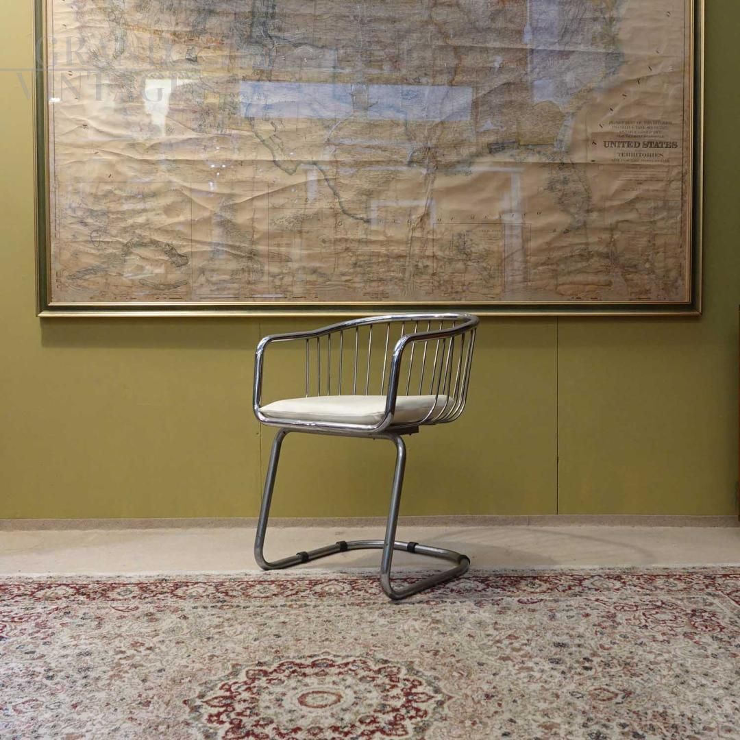 This vintage cantilever chair in chromed metal is a timeless classic of industrial design, and takes inspiration from the designer Gastone Rinaldi. Essential lines, solid structure and a strong style make it perfect for retro environments, contemporary lofts or creative spaces with a minimal and refined taste.