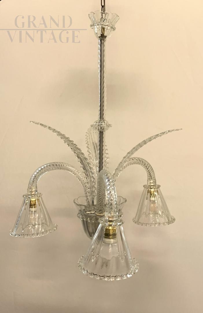Vintage chandelier attributed to Seguso with 3 bell lights, 1950s
