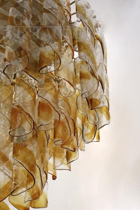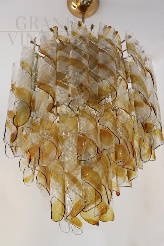 Vintage chandelier with amber Murano glass curls, 1970s