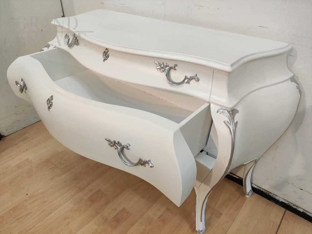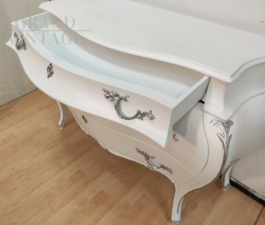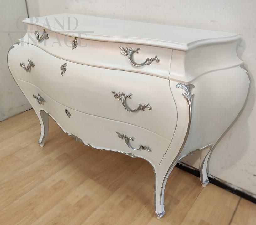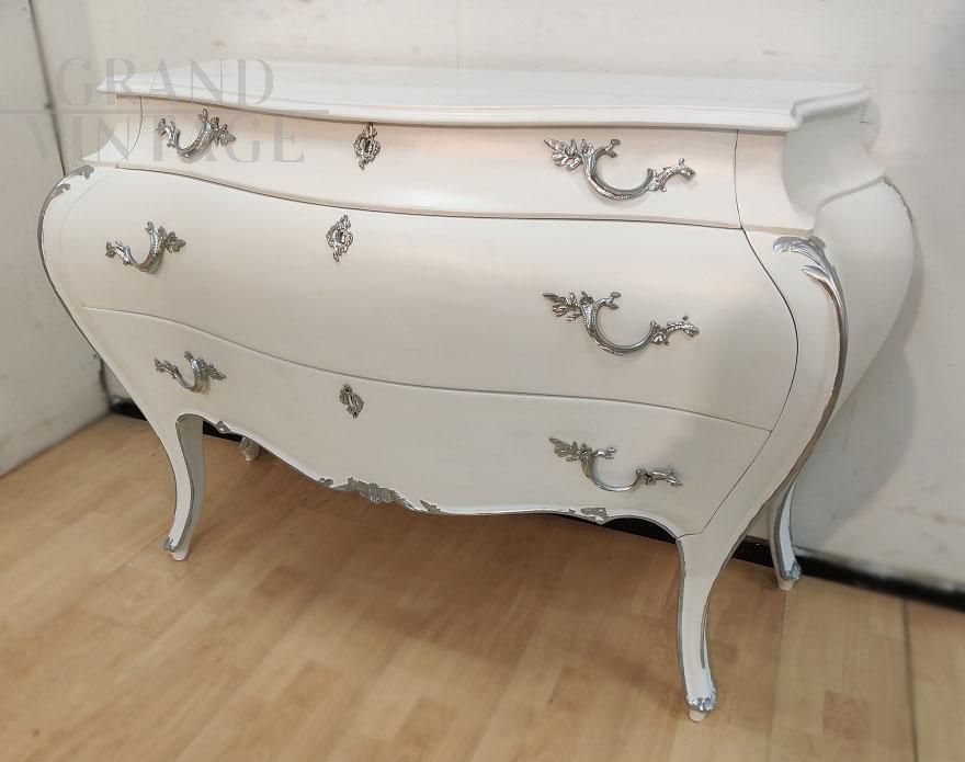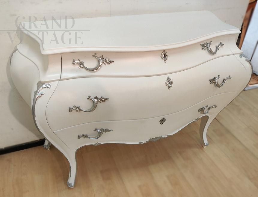Vintage chest of drawers in Venetian Baroque style, white lacquered