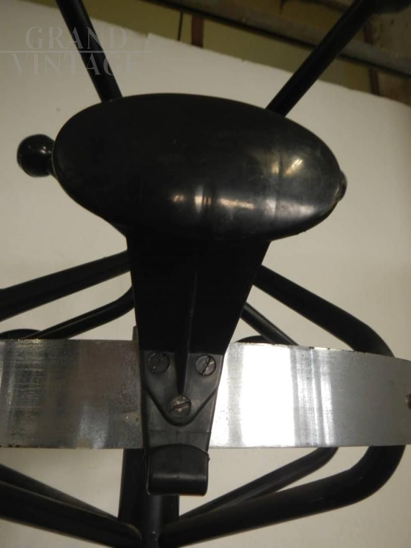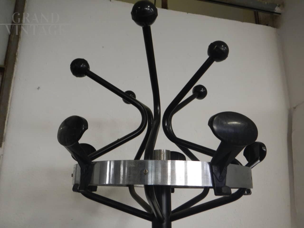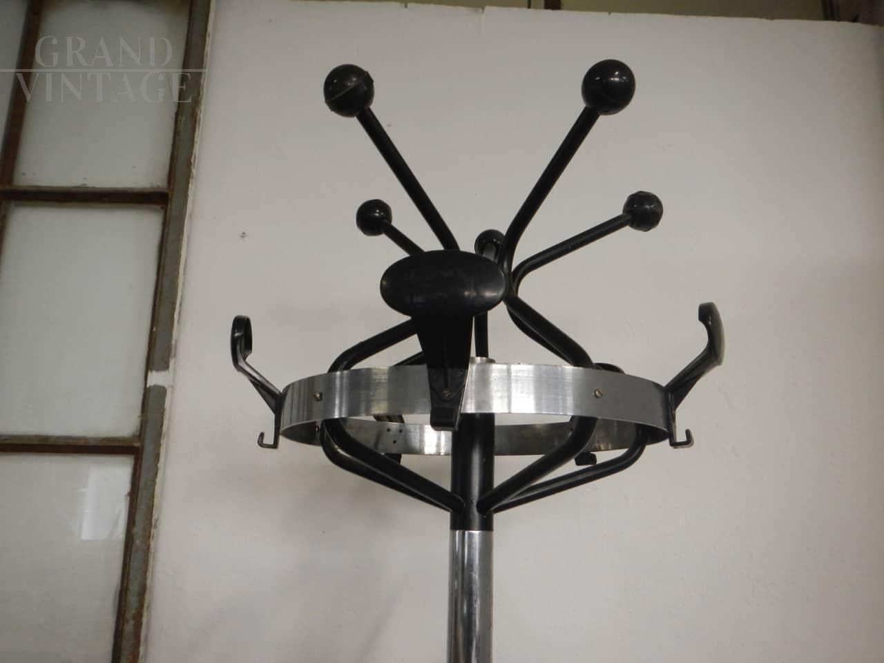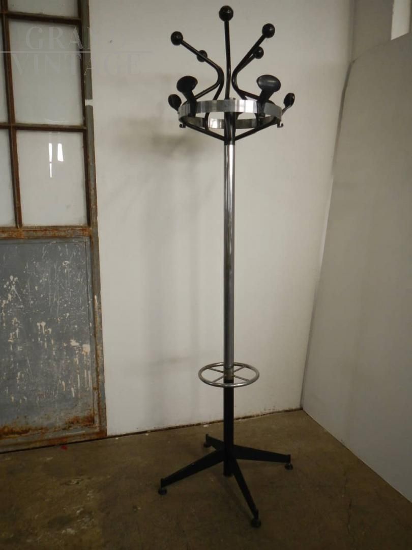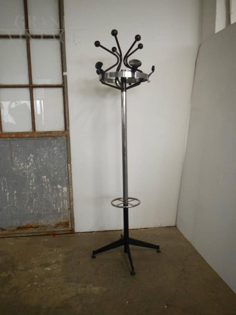 Vintage 70's floor hanger coat rack in chromed metal and black paint.