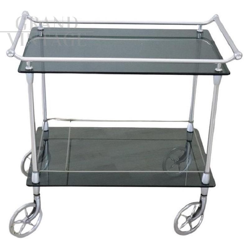 Vintage chromed food trolley with smoked glass tops, 1980s