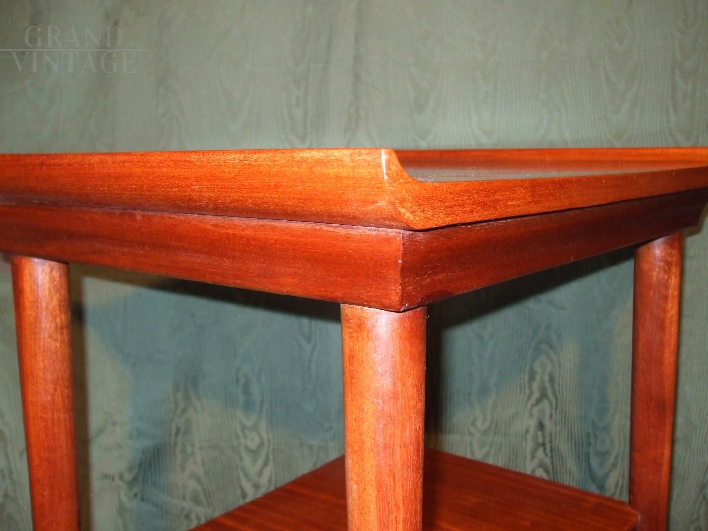 Vintage coffee table with two tops in mahogany wood, 1950s design, with particular tray top. Also excellent as a TV stand.