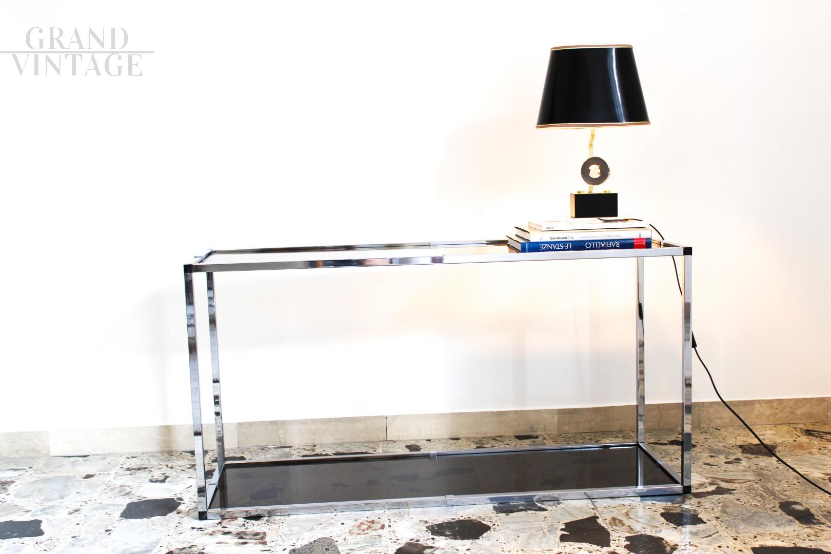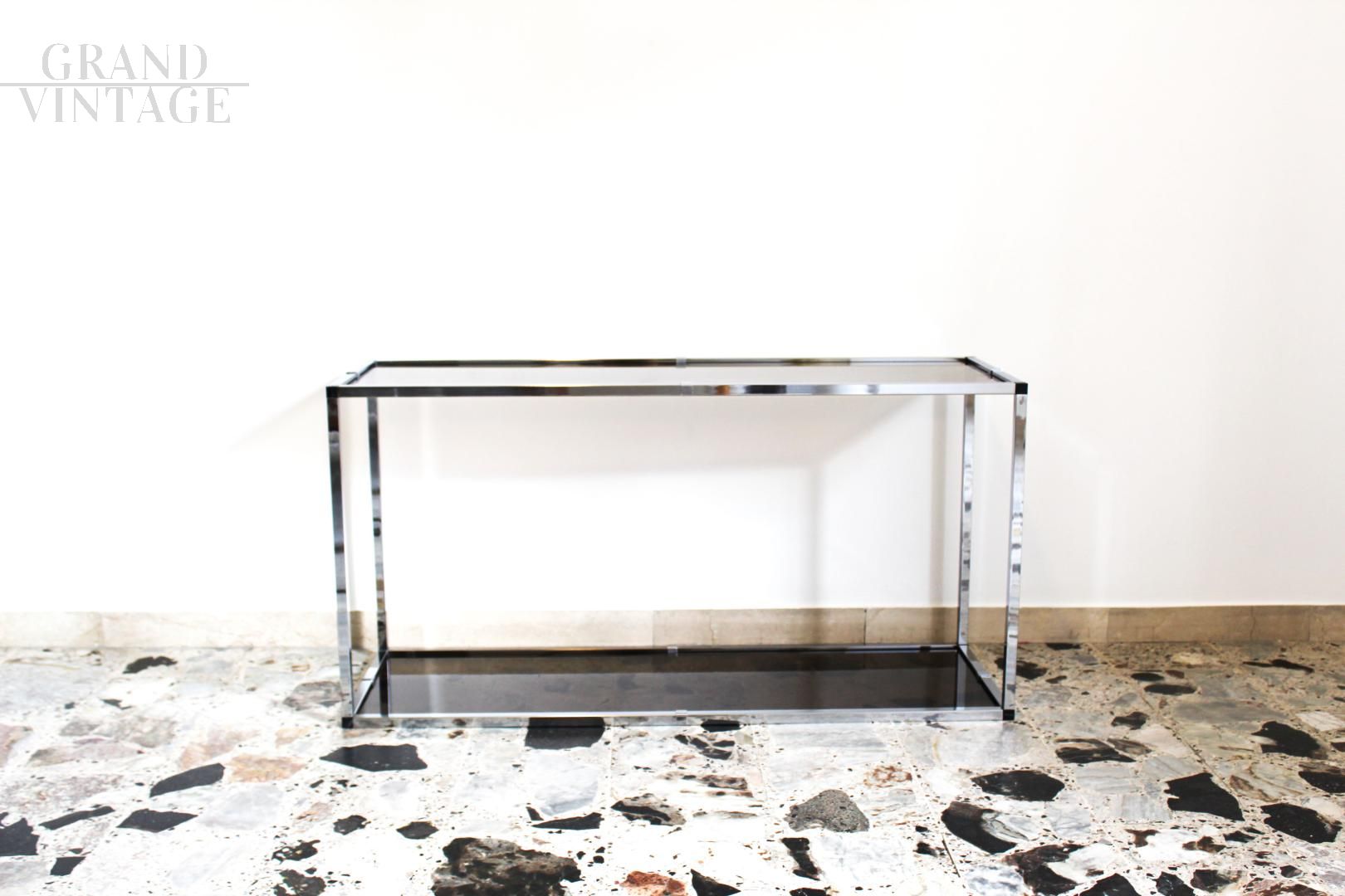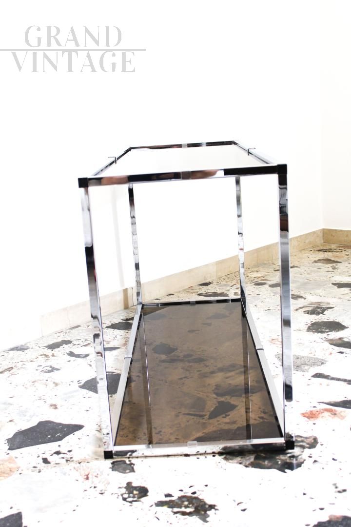 Vintage console in chromed metal and smoked glass, Italy 1970s