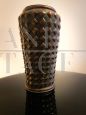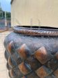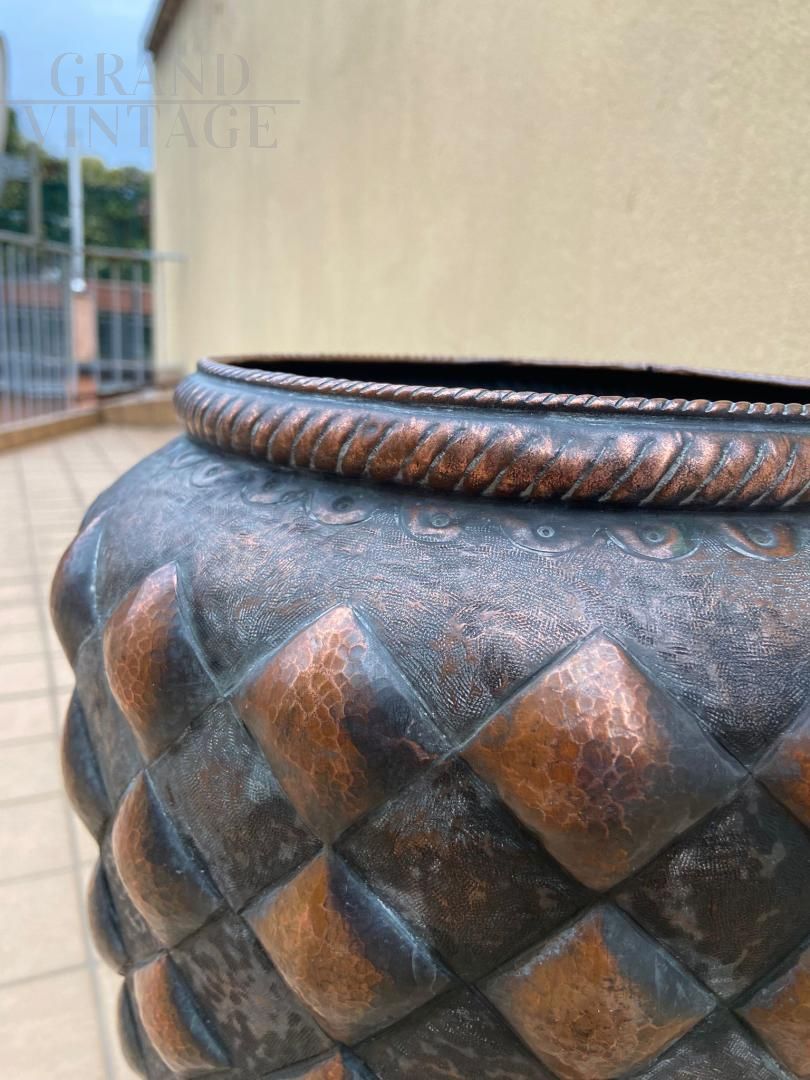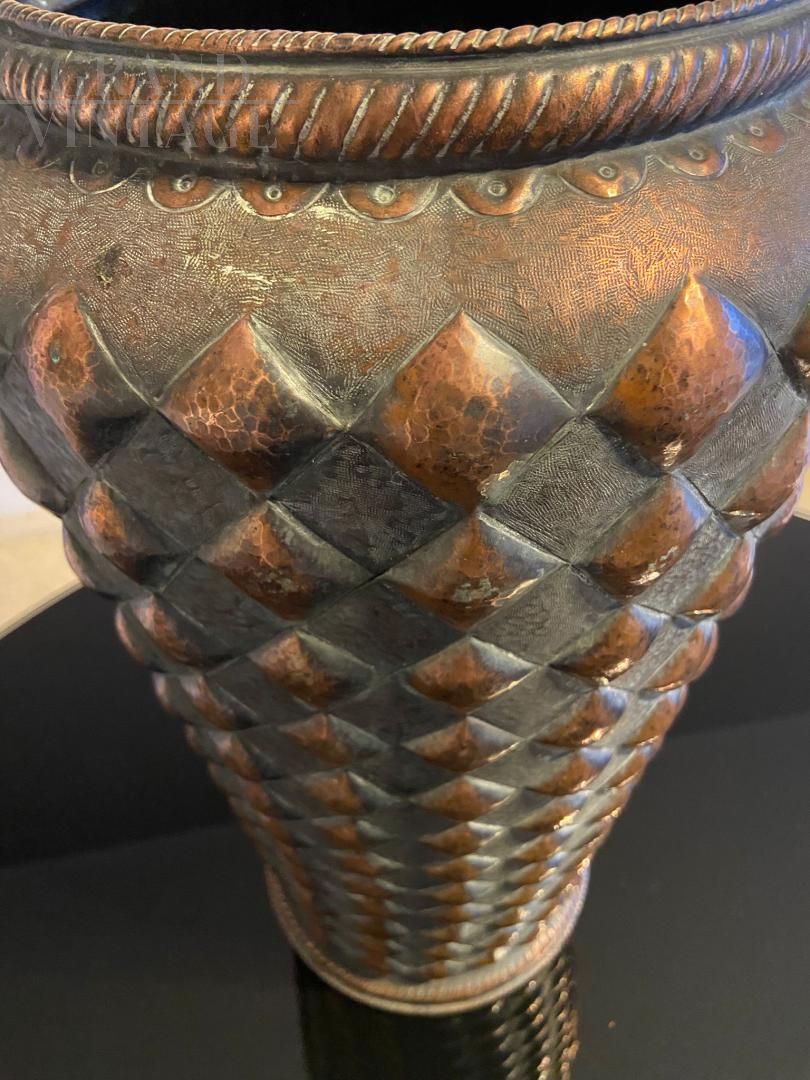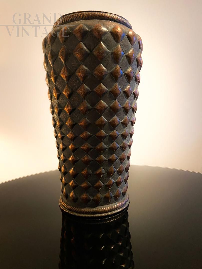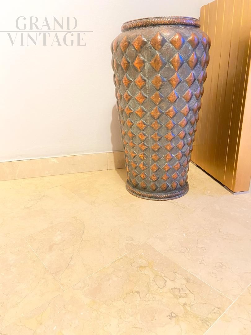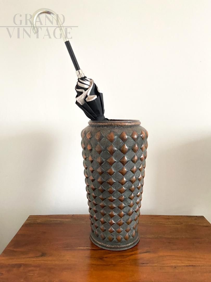 Vintage copper umbrella stand decorated with rhomboidal figures in relief, Italy 1950s, in good condition.