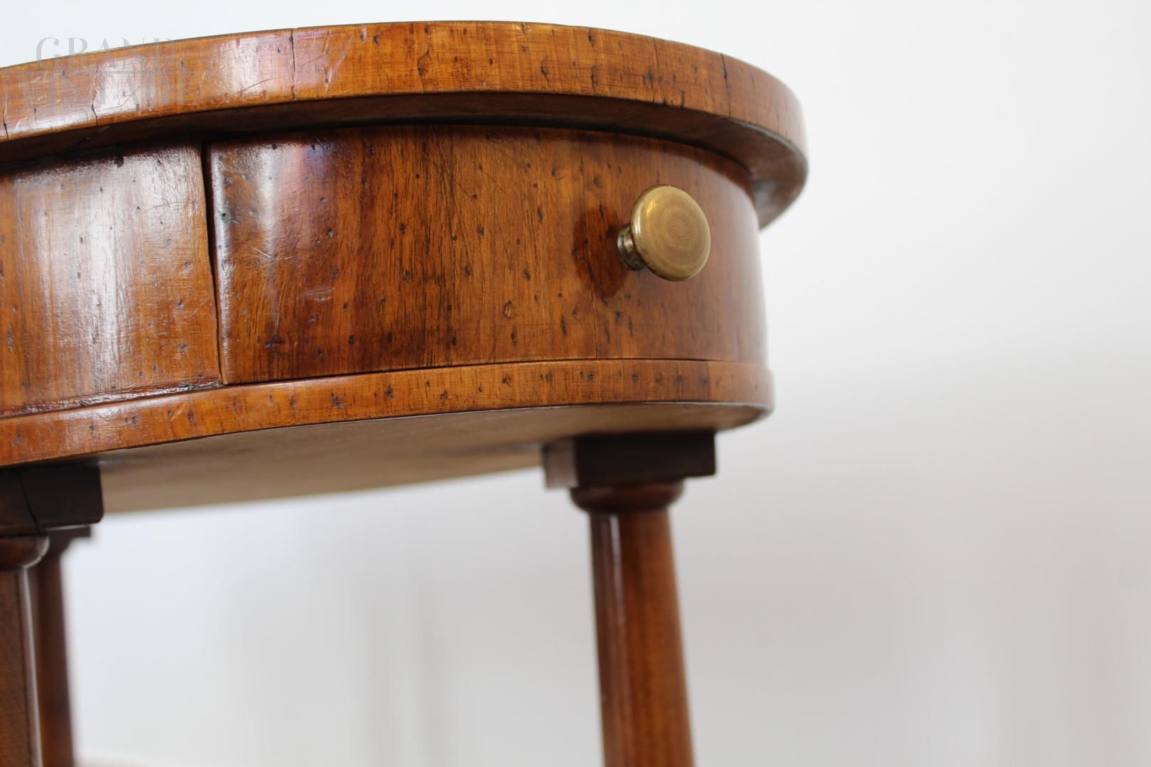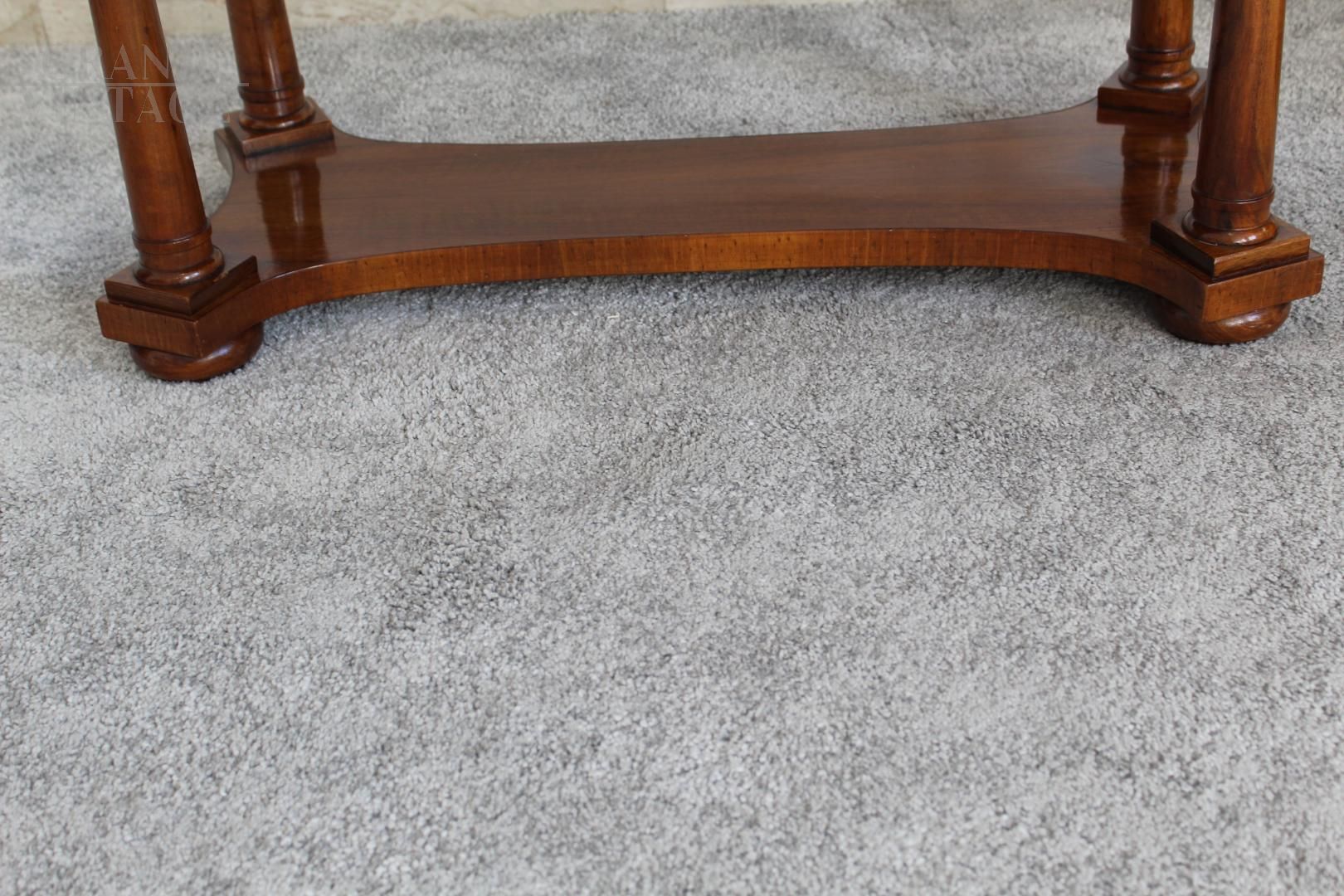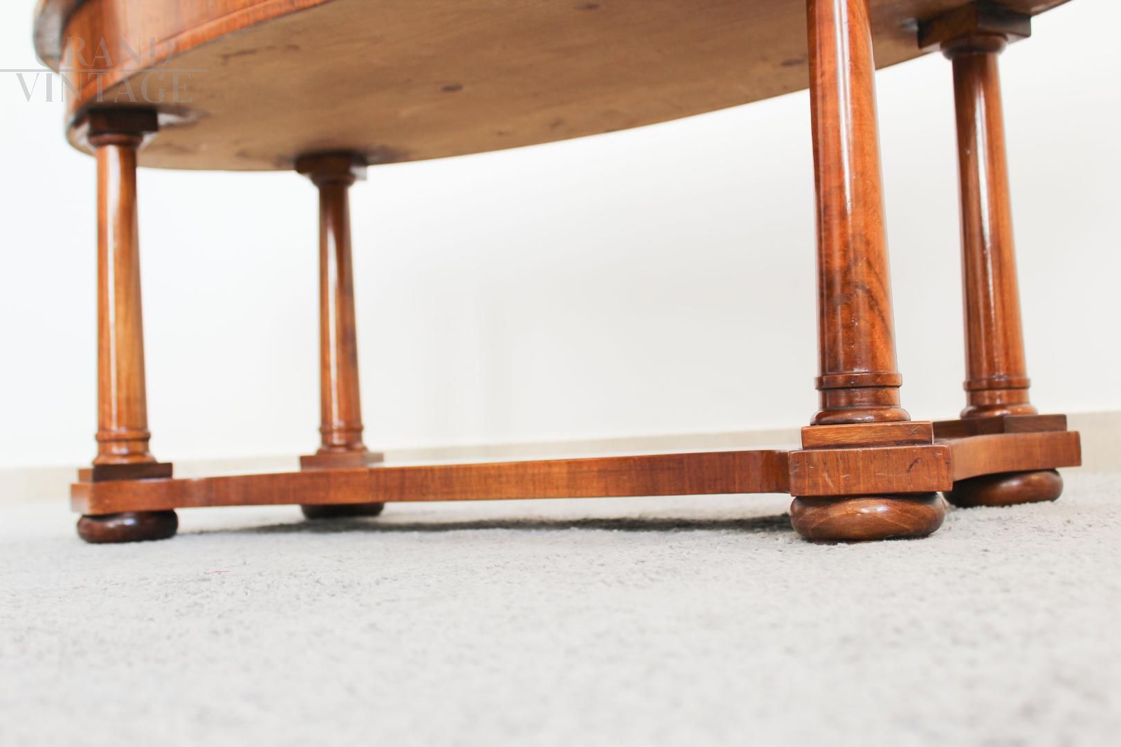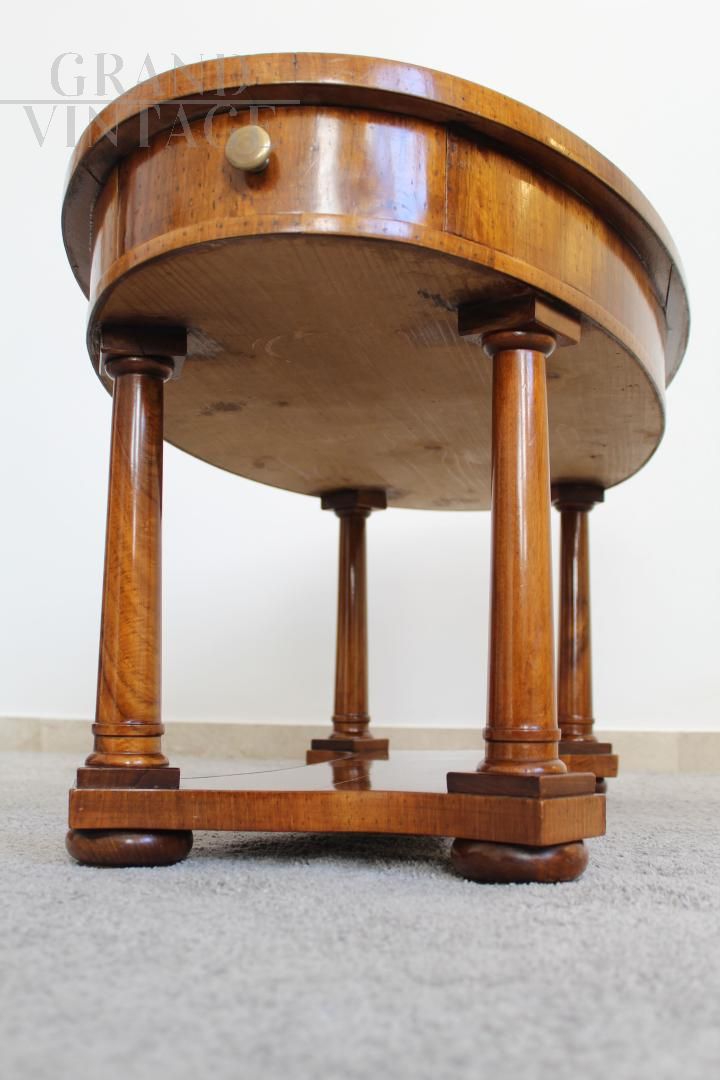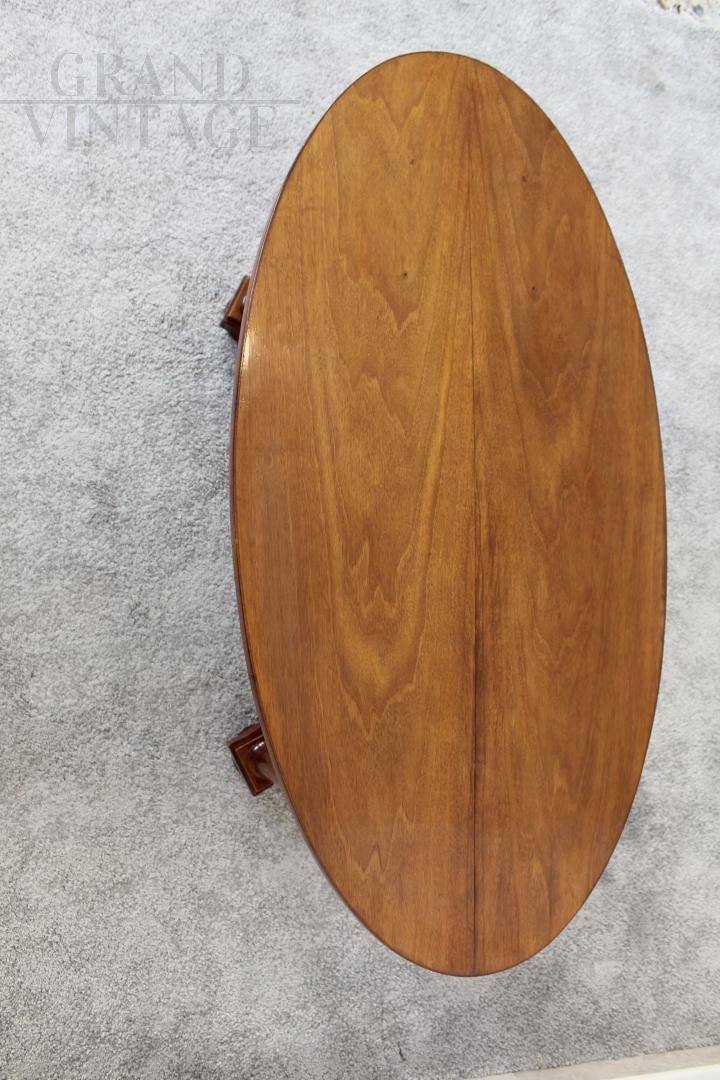 Vintage Empire style coffee table with 2 side drawers, in walnut wood, Italy 1940s.