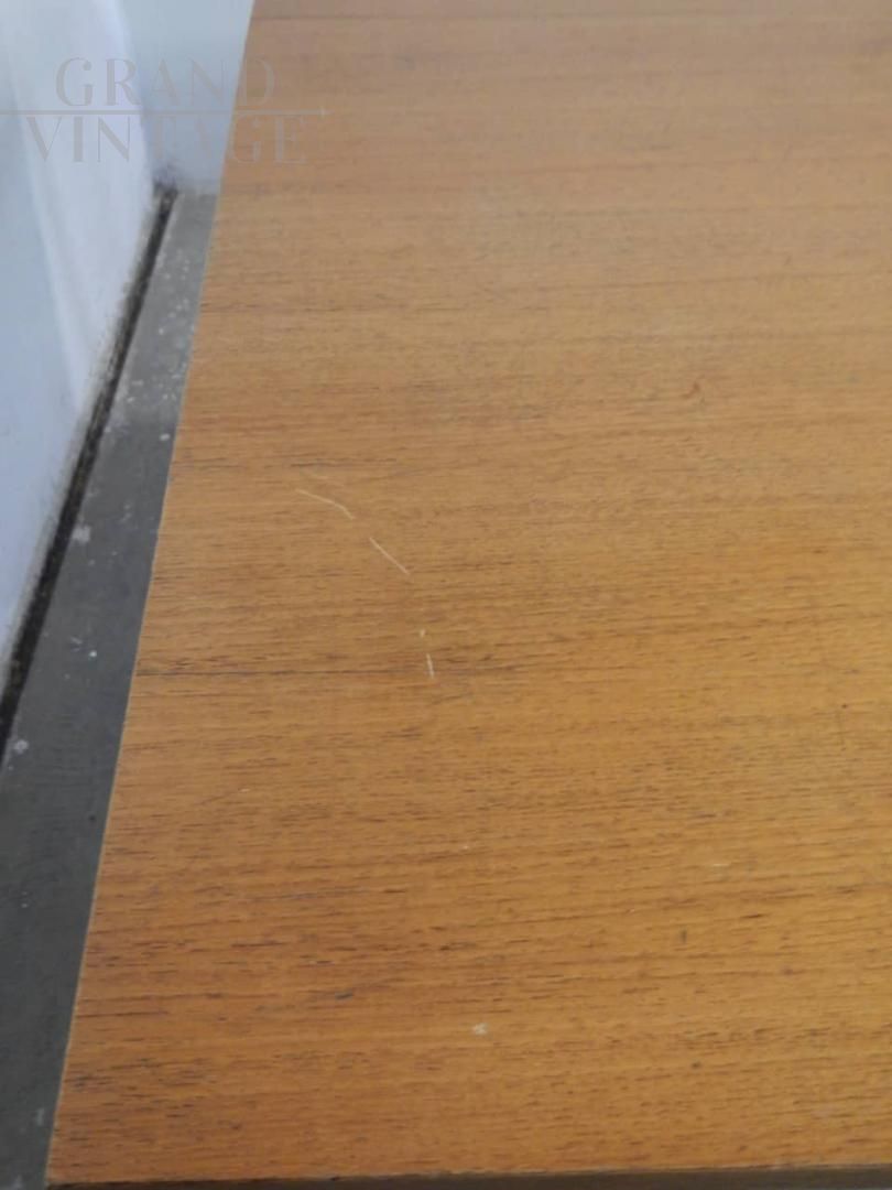 Vintage formica dining table extendable up to 178 cm. The structure is good with some defects in the top due to use. Equipped with a 39 cm extension in the center. The space to insert the seats is 66 cm.
