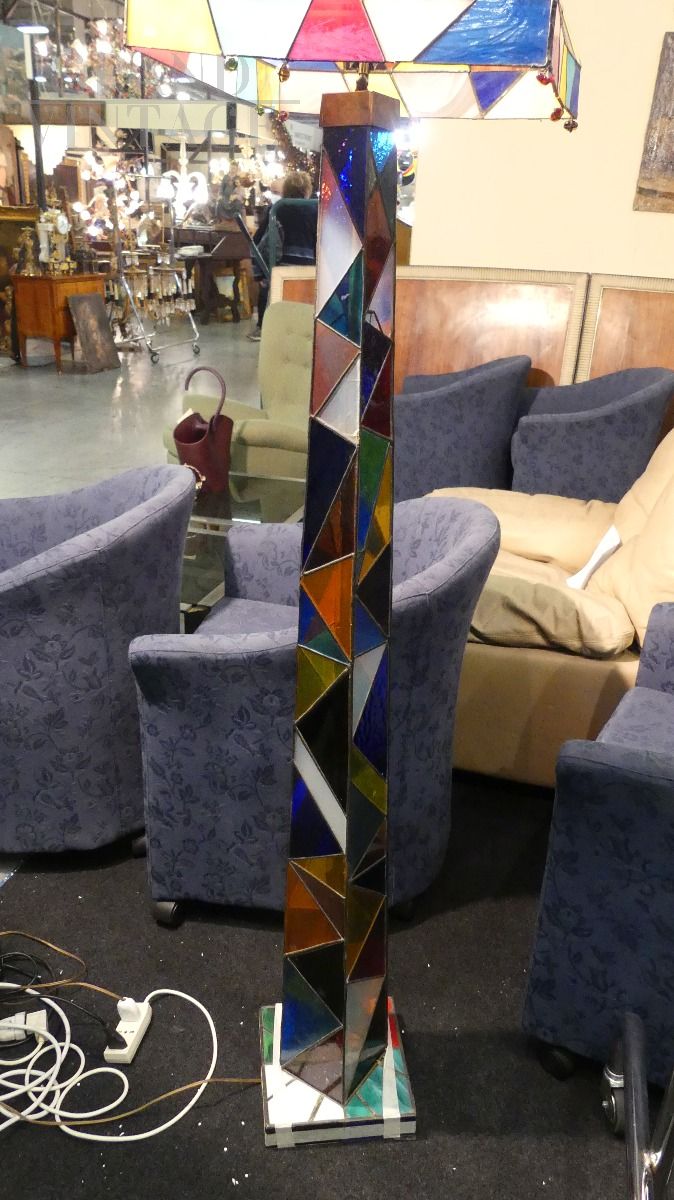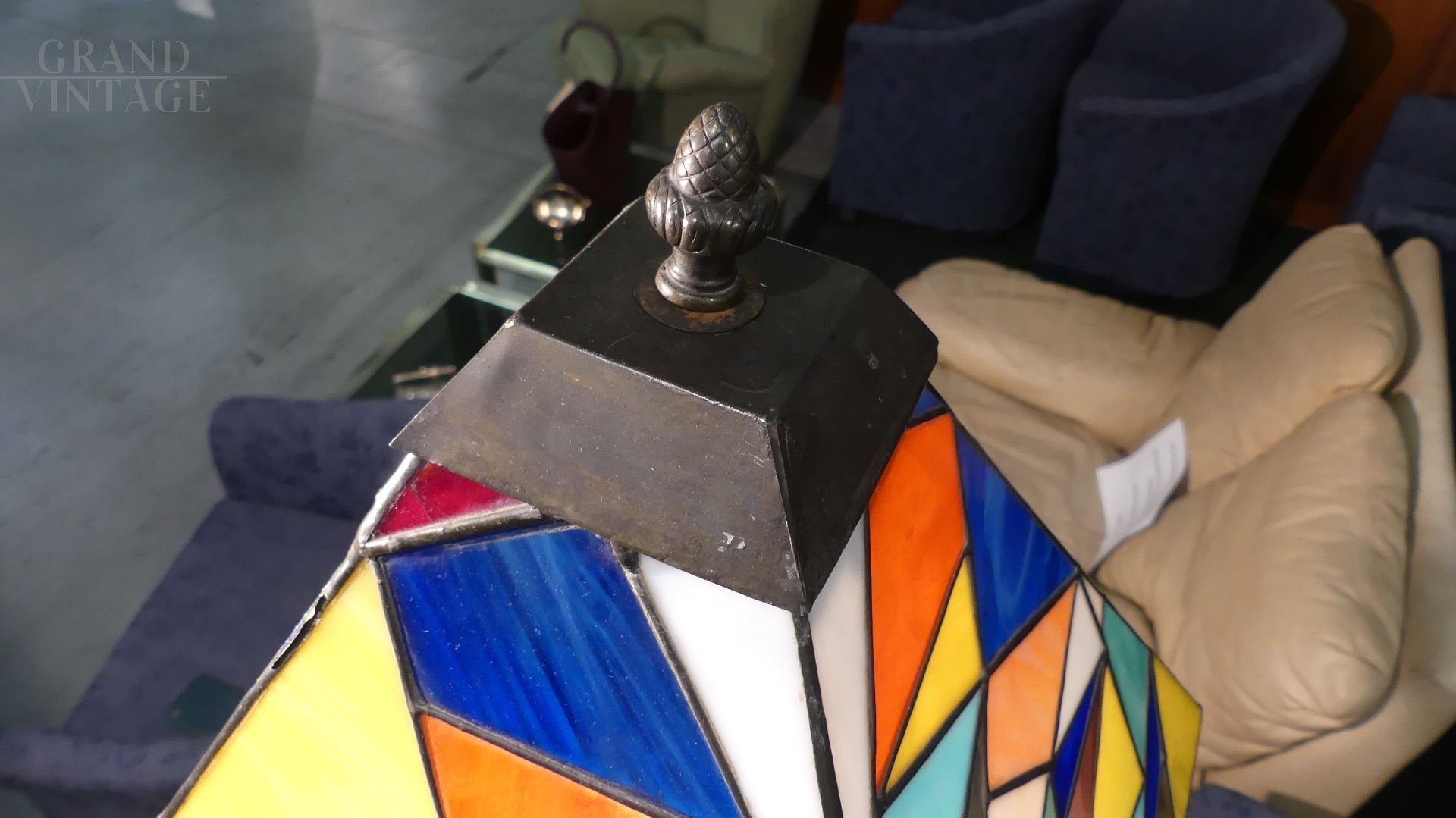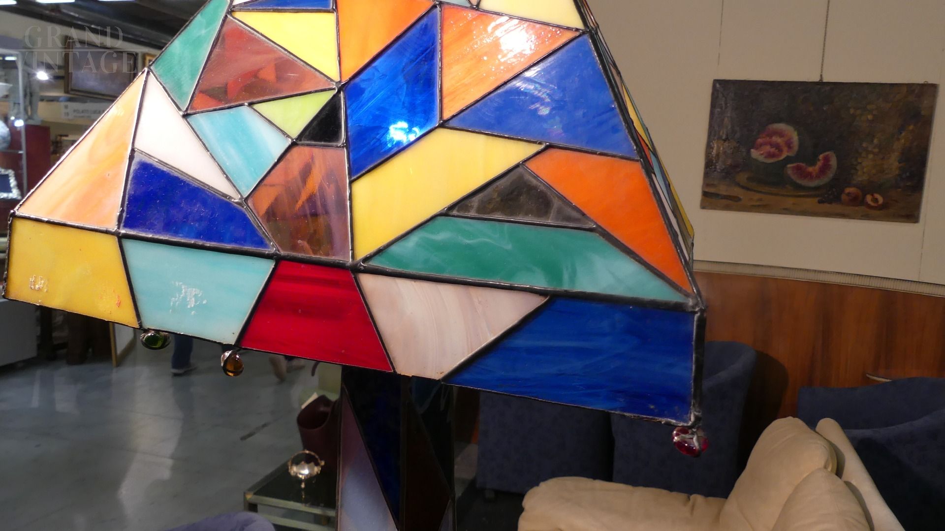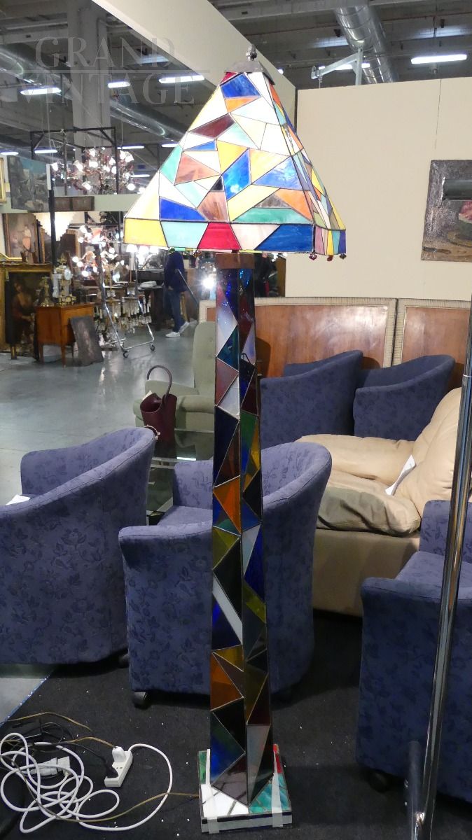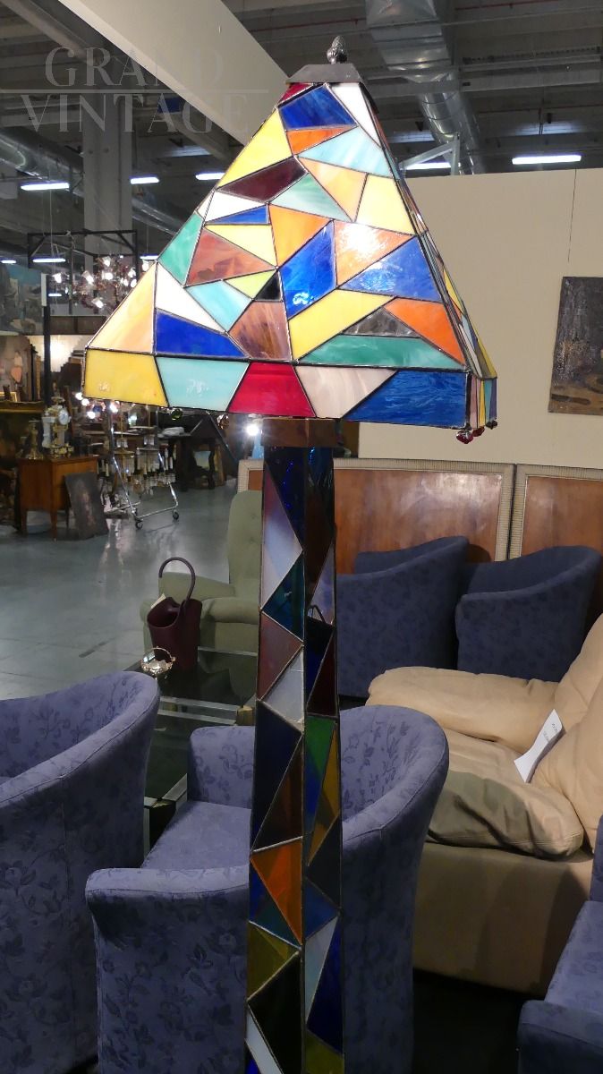 Vintage Italian 80s floor lamp entirely made of multicolored leaded glass, probably handcrafted and therefore it would be a unique piece.