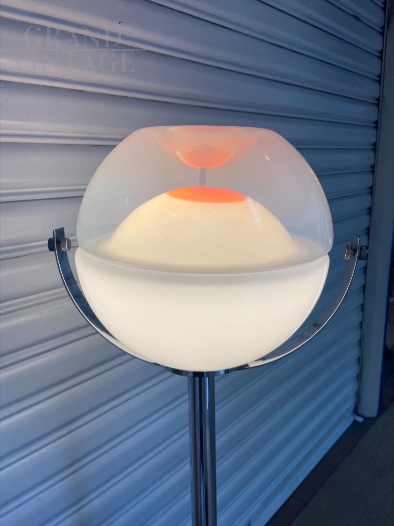 Vintage Murano glass floor lamp with aluminum structure, Italy 70s, with light intensity regulator dimmer.