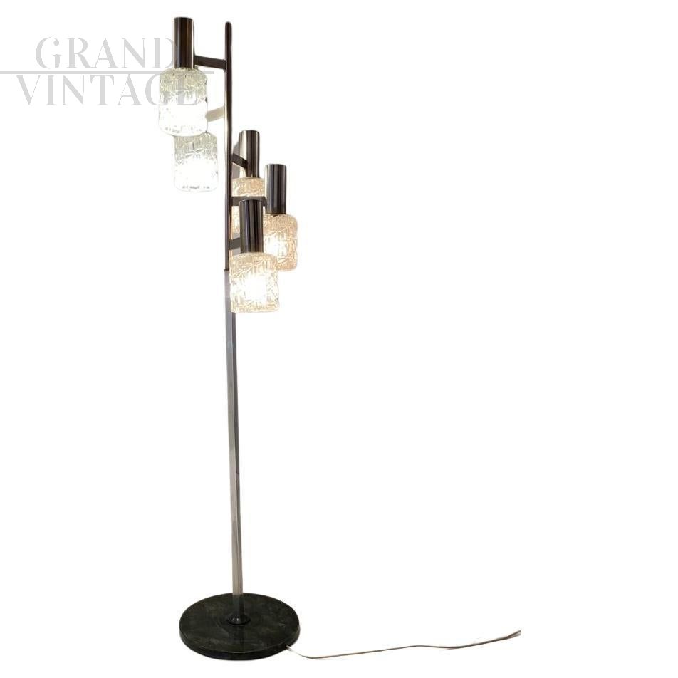 Vintage floor lamp with 5 lights in finely worked glass, 1970s