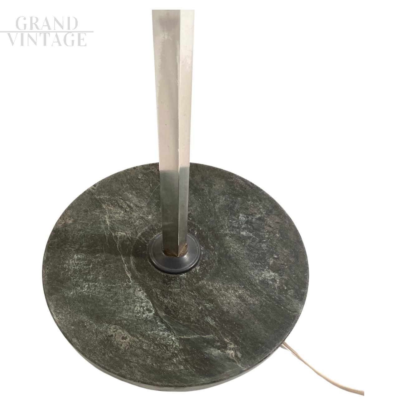 Vintage floor lamp from the 70s with steel structure, 5 lights with finely worked glass shades and marble base. Overhauled electrical parts, in very good condition with natural signs of age.