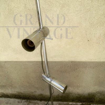 Vintage chromed metal lamp with two height-adjustable bayonet spotlights, France from the 1970s