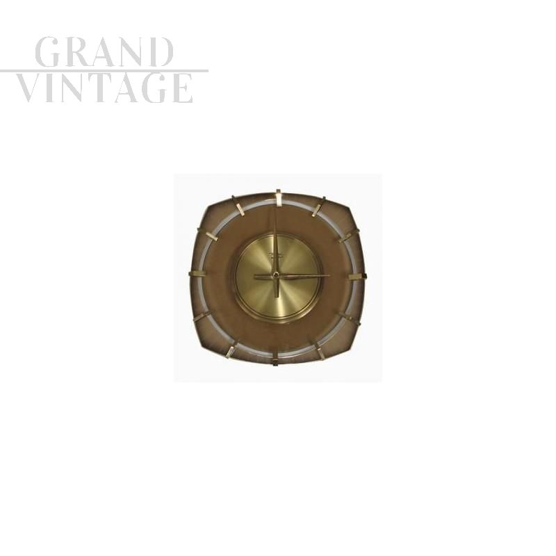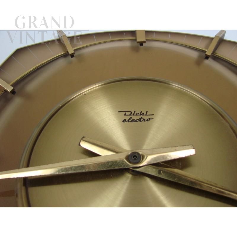 German Karl Diehl clock, 1960s. Made of brass and glass in the shape of a square with rounded sides. Preserved in excellent condition, working, requires R14 battery.