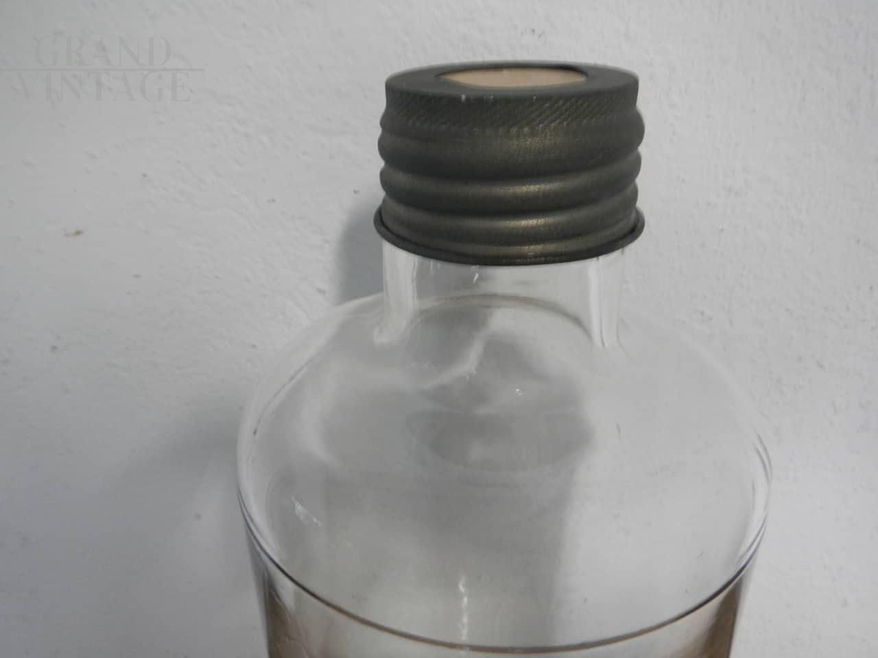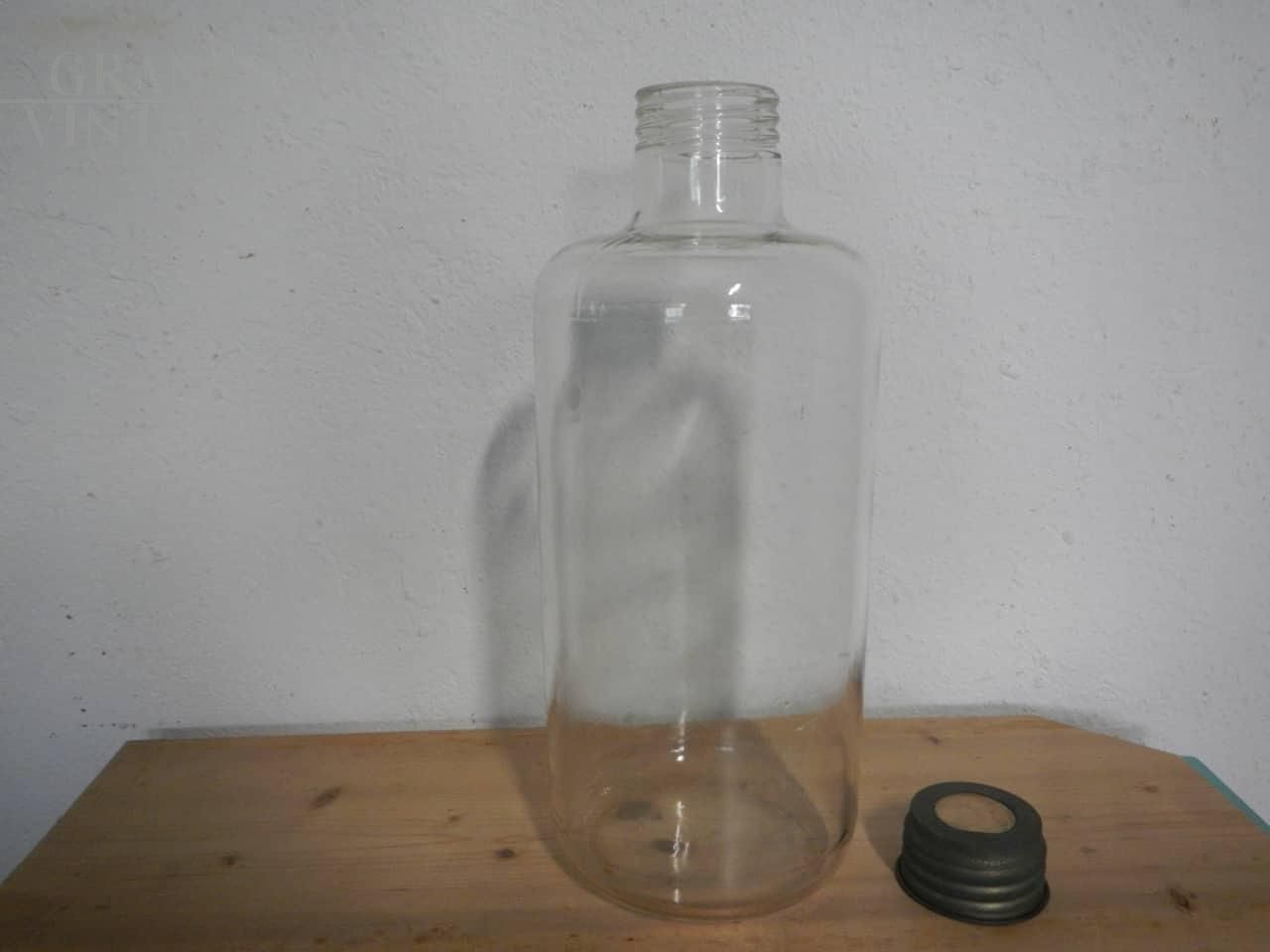 Vintage bottle used in school workshops, in transparent glass with iron cap. In good condition.