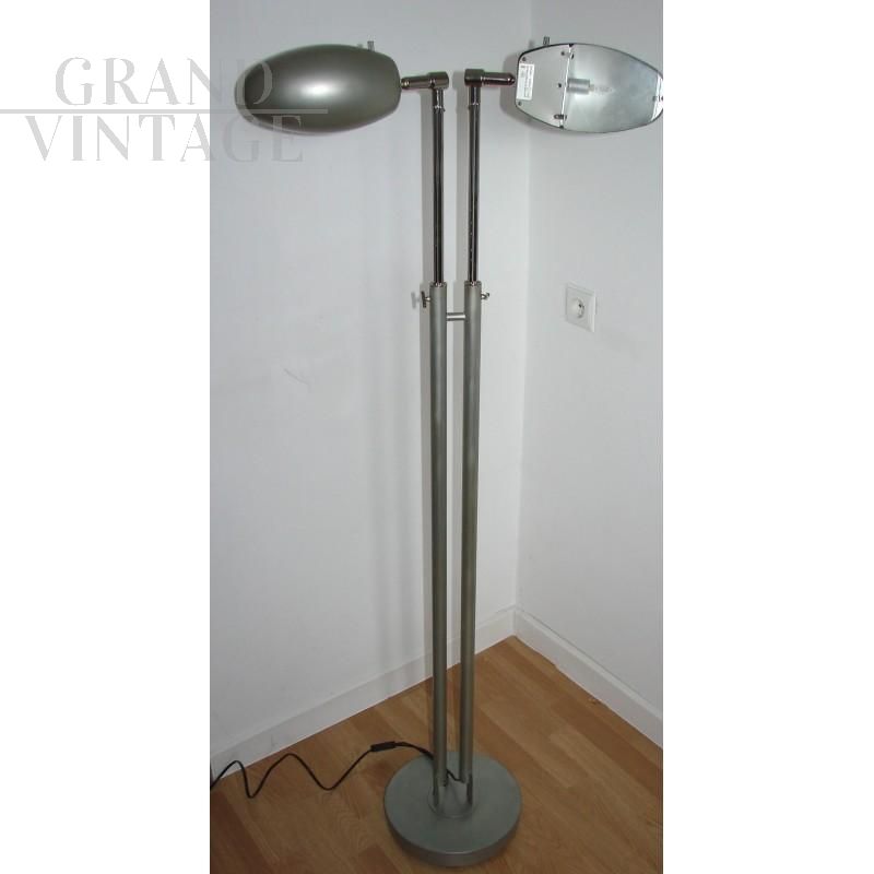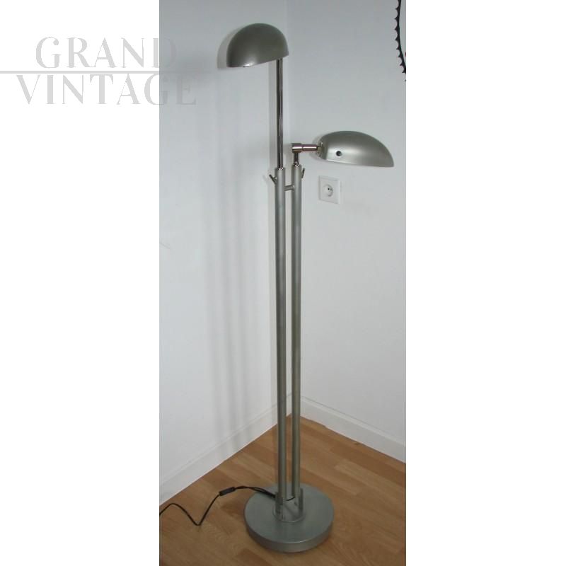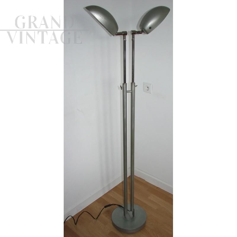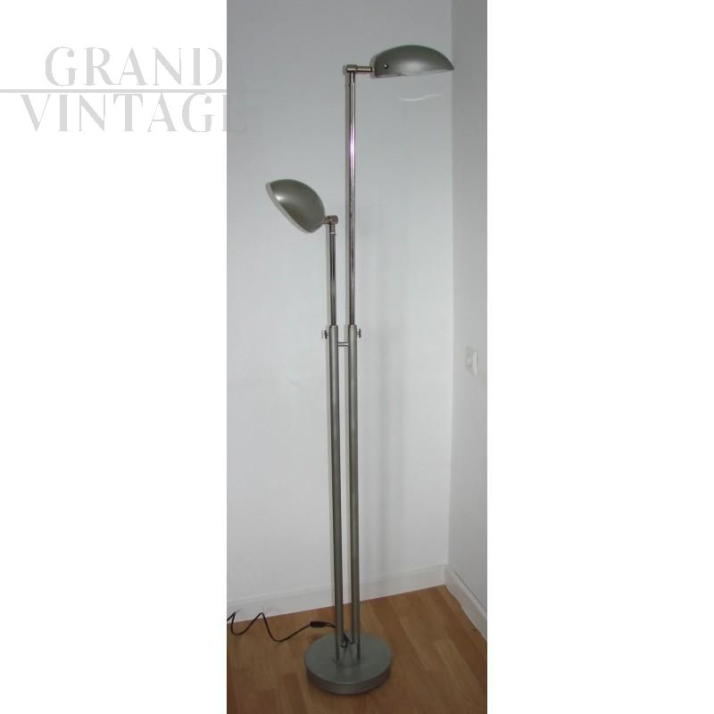 Modern style floor lamp, 1980s. It is made of metal, is adjustable in height, the lampshades can be directed independently to allow you to set the light in any position, and you can also adjust the intensity of the light (each separately). The base is swivel. The lamp is in good condition.