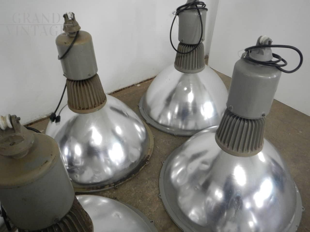 Vintage industrial lamps in chromed metal