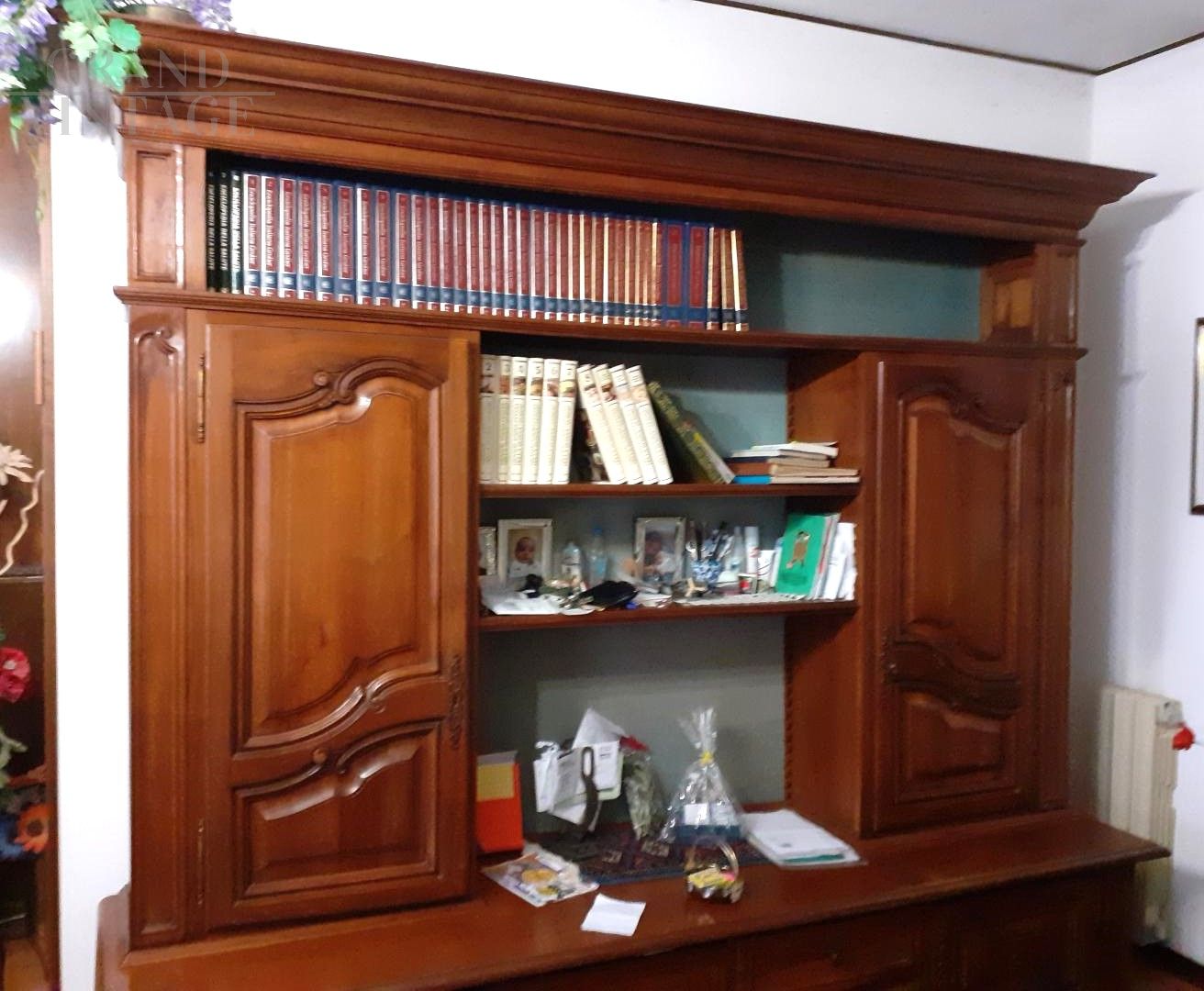 Vintage Italian artisan bookcase from the 70s made of solid national walnut.