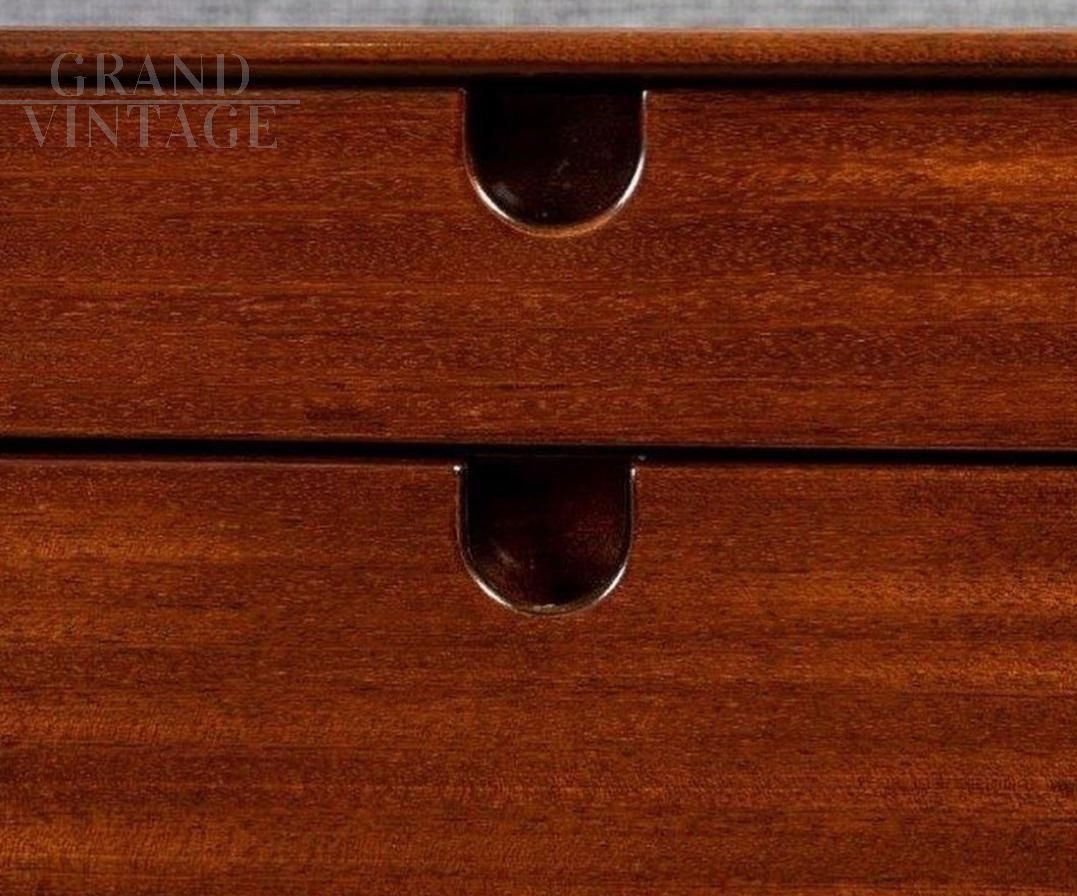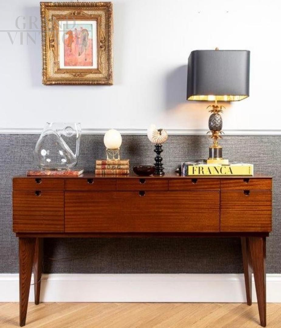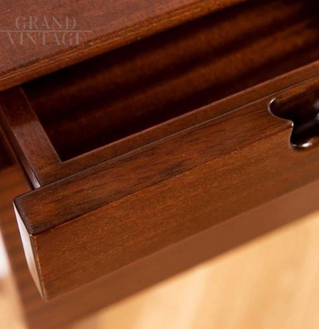 Vintage Italian midcentury design console sideboard with drawers, in splendid walnut wood.