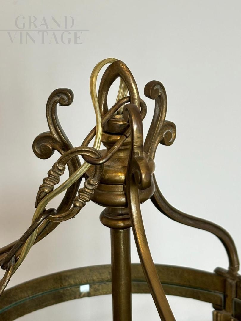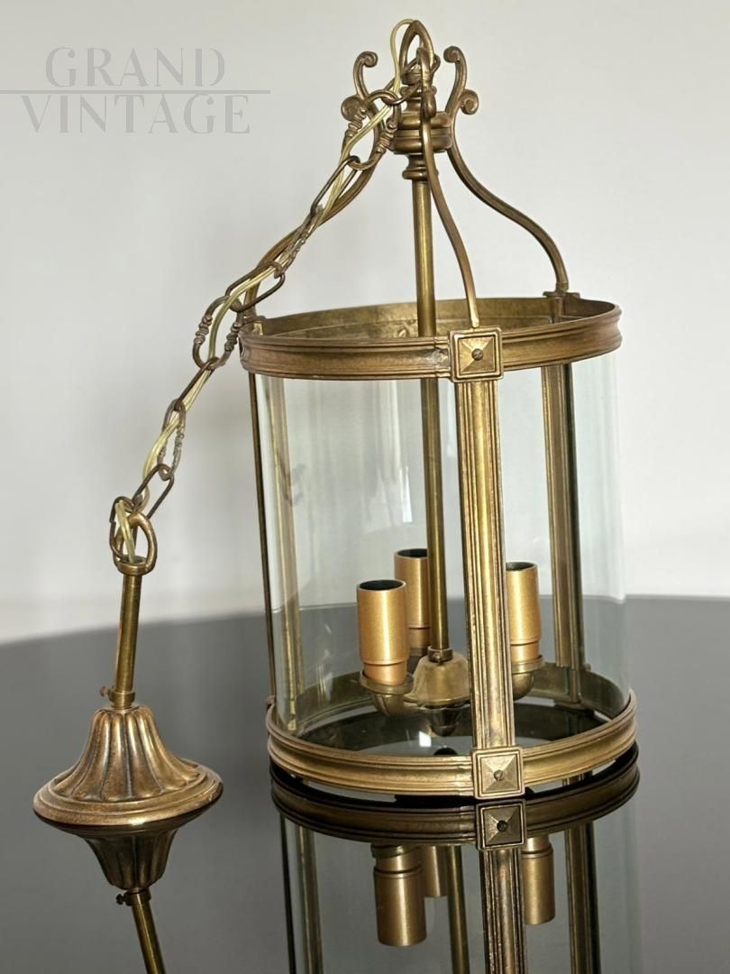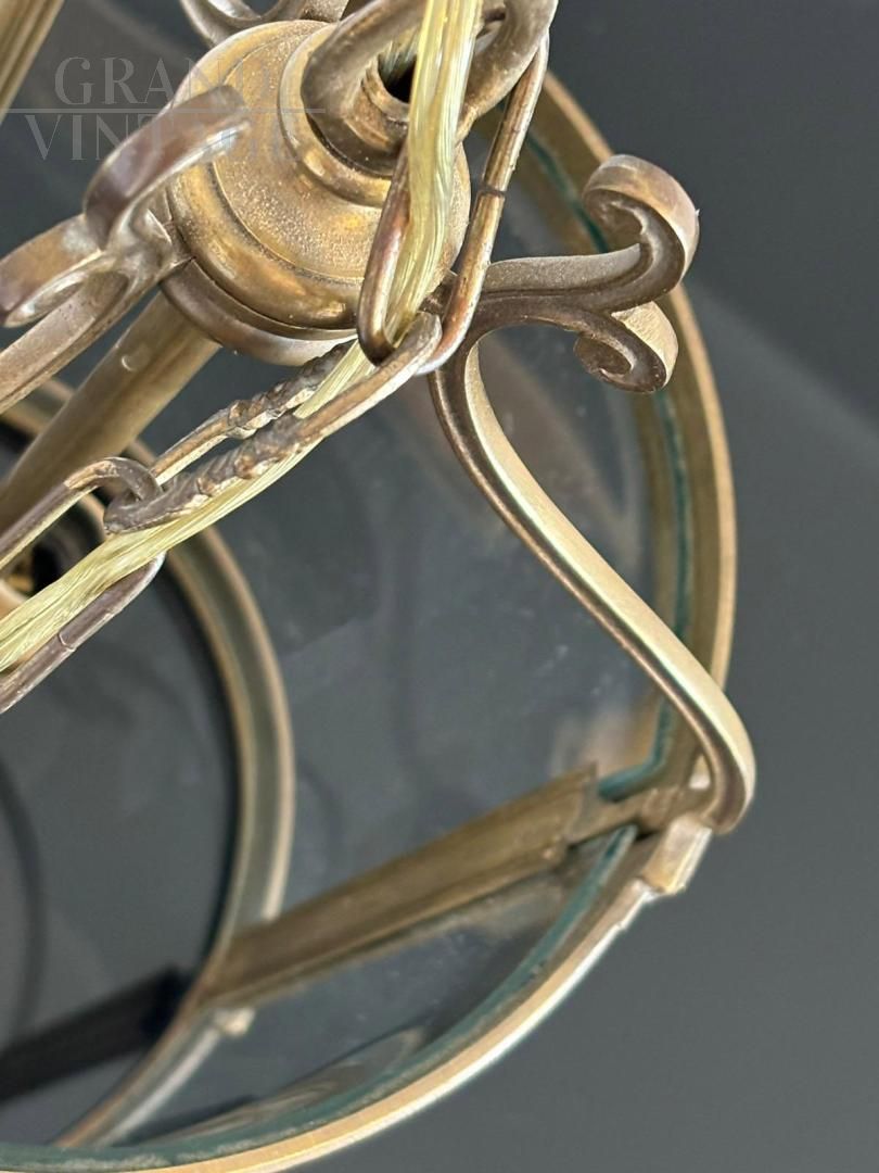Vintage lantern chandelier in brass and blown glass, Italy 1950s