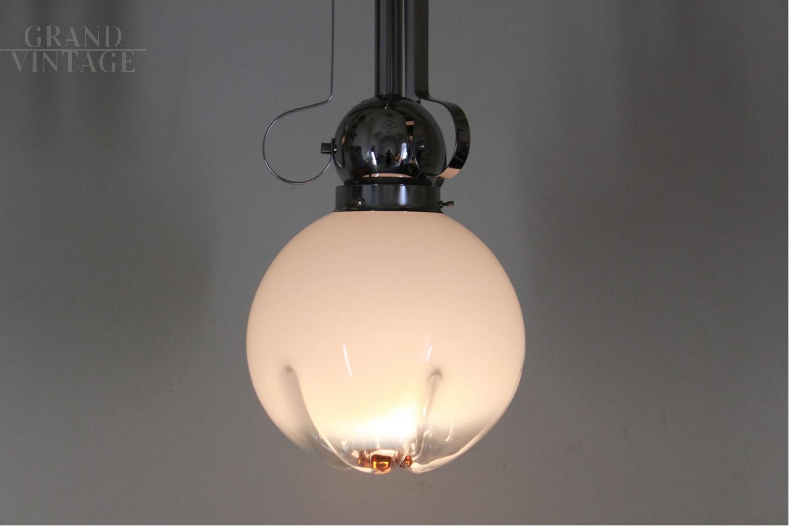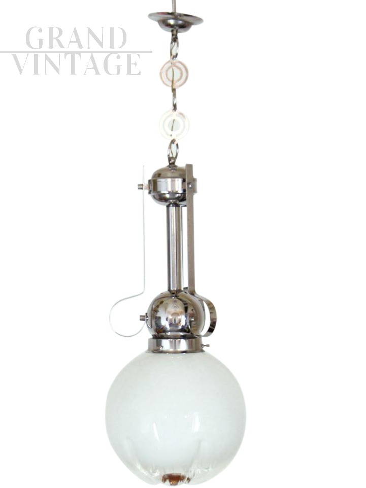 Chandelier from the 70s in Murano glass, produced by the historic Mazzega company, with chromed iron structure. Overhauled electrical parts, clean and polished iron structure.