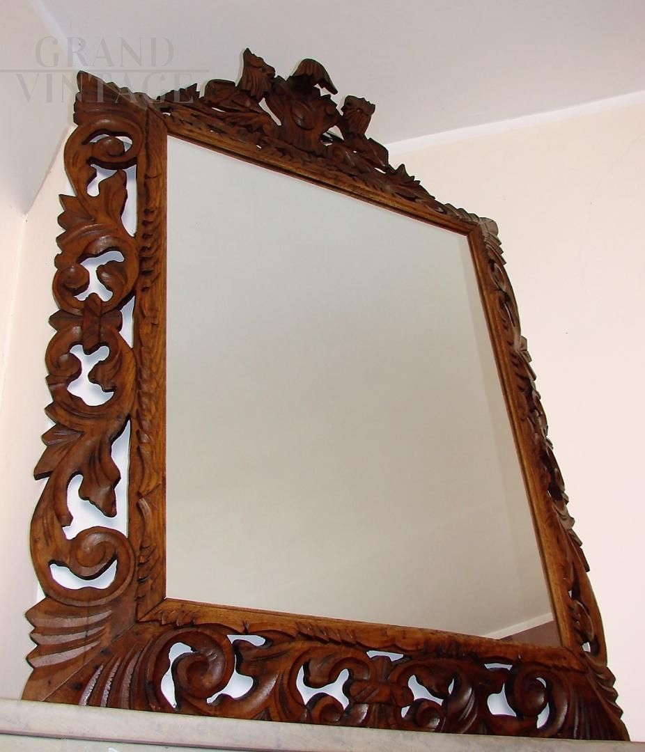 Beautiful vintage 1940s mirror in a finely carved wooden frame.