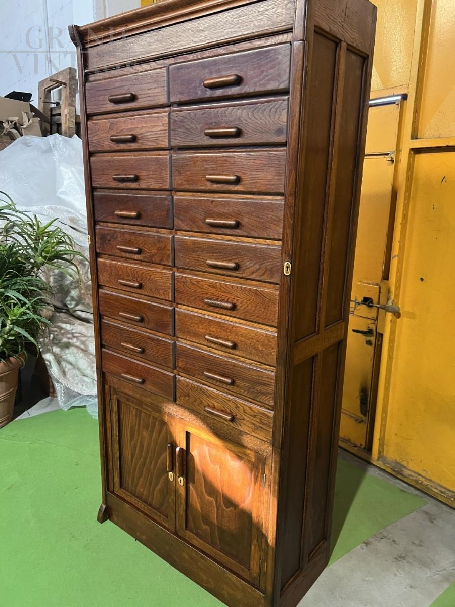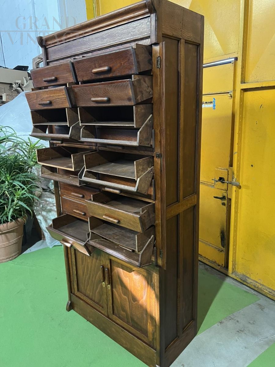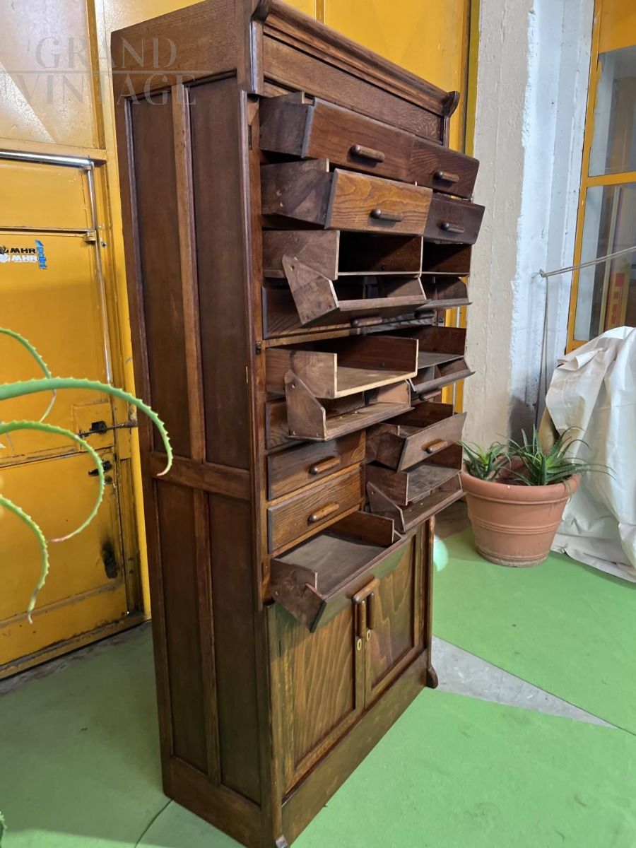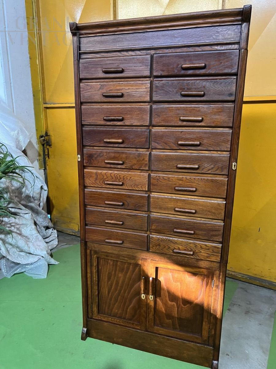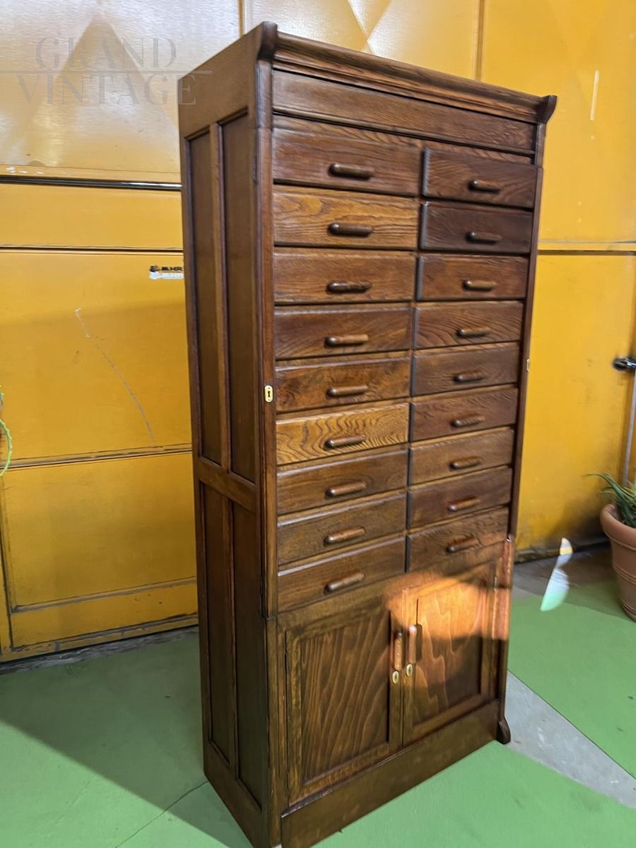 Stunning vintage filing cabinet drawer unit in oak wood, completely original, coming from the office of a lawyer in Como, Italy.