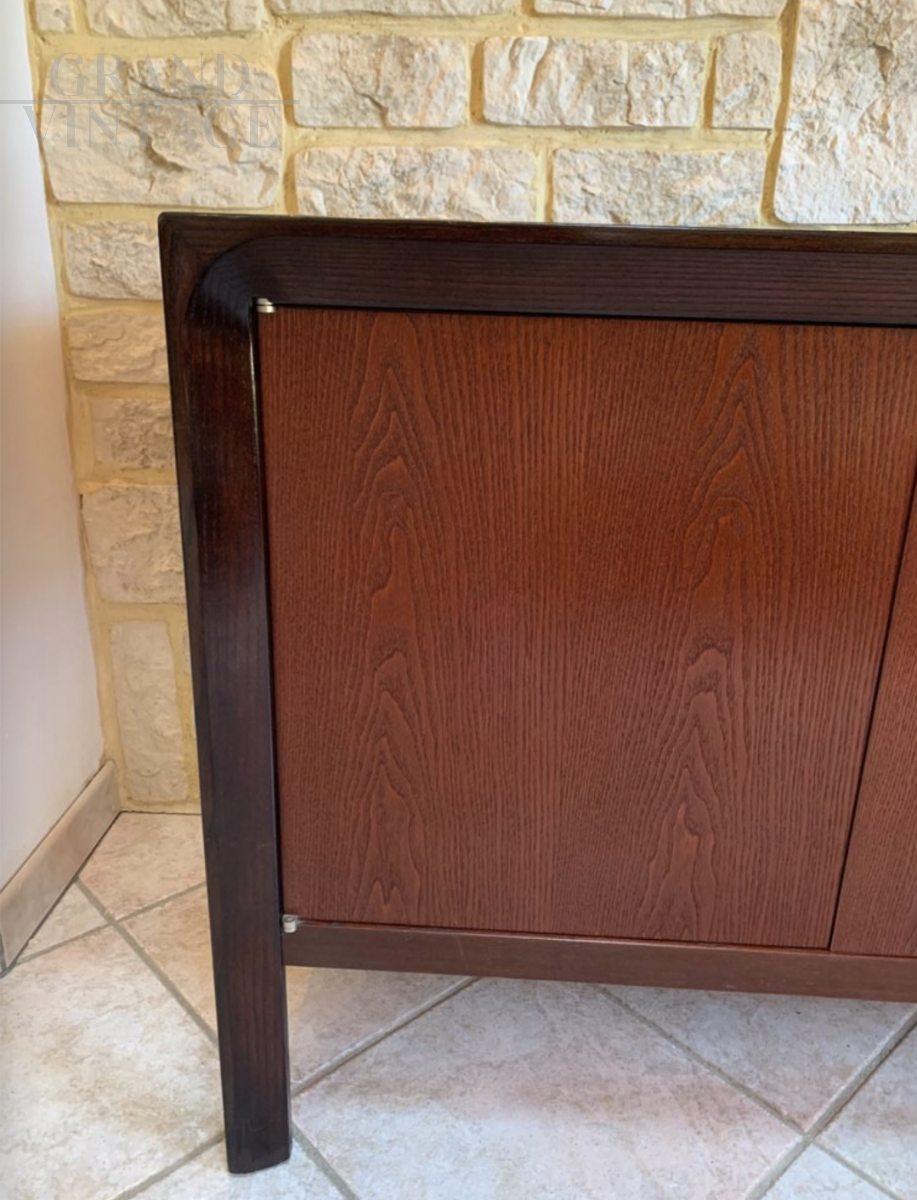 Vintage Scandinavian style downtown sideboard, perfect as office furniture, 1970s. The cabinet can be used as a room divider, the back is as elaborate as the front, and consists of 2 double doors with 2 storage compartments each, including a shelf (height-adjustable shelves).