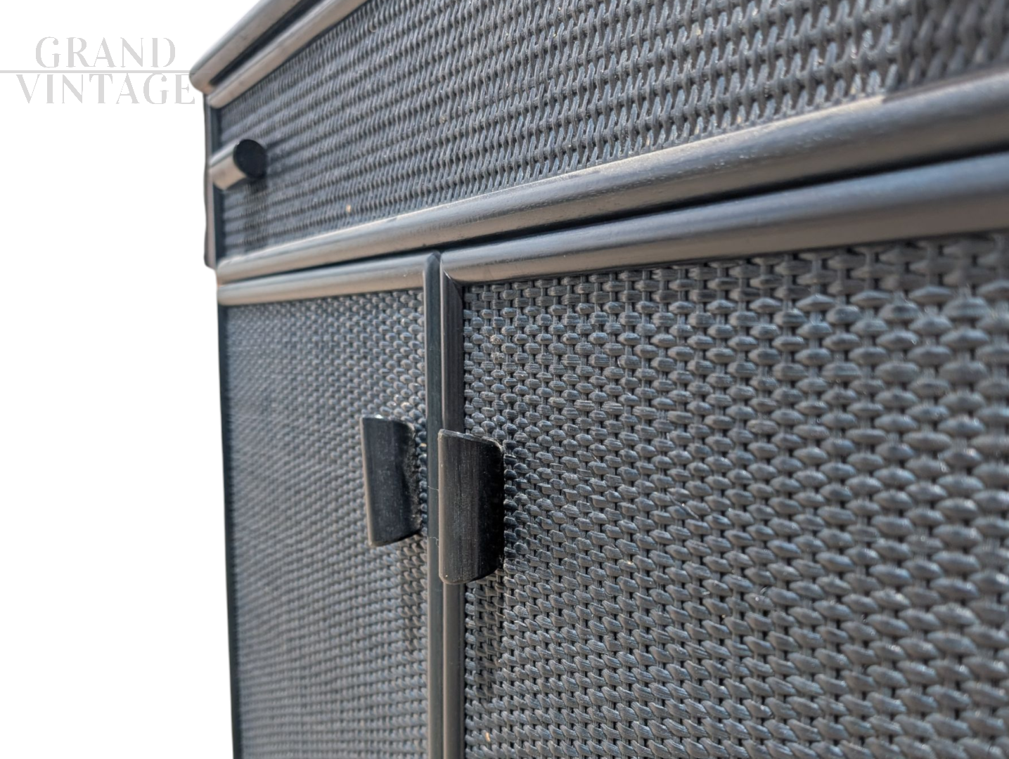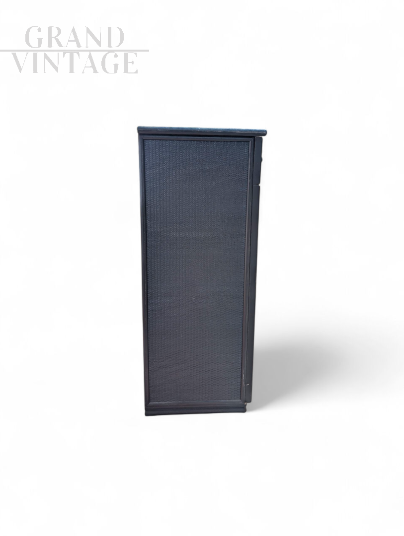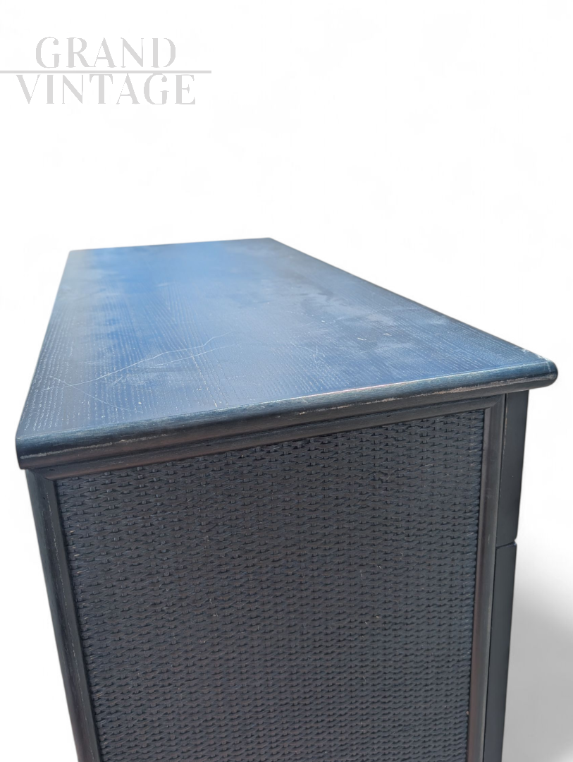 Vintage petrol blue wicker cabinet, 1960s