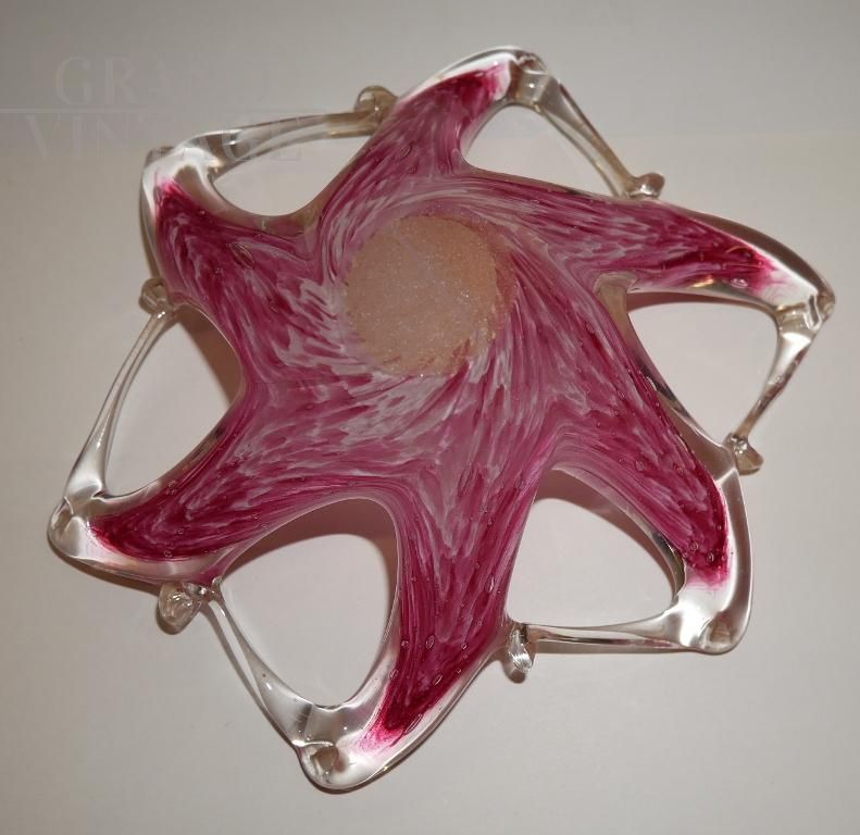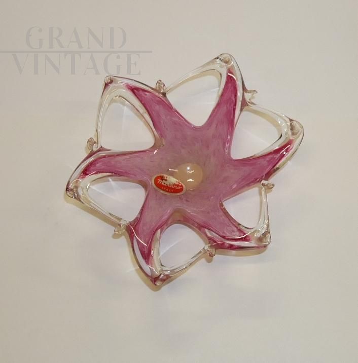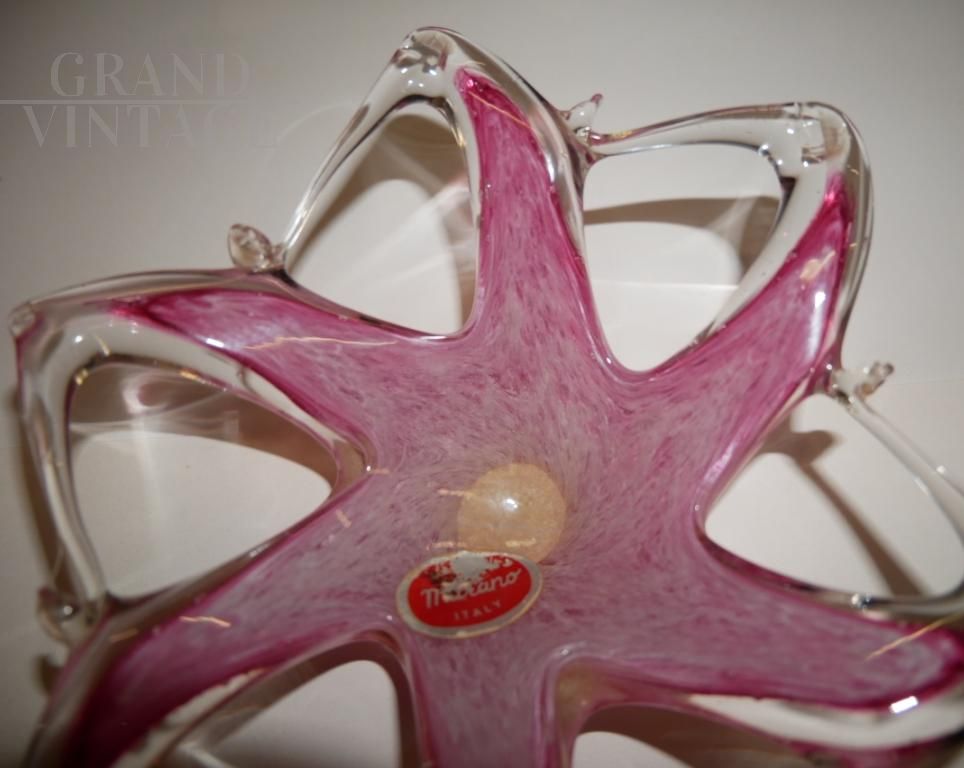 Vintage pink Murano glass pocket tray, ashtray or centrepiece, ornament and decorative collector's item, circa 1970s, with original sticker attesting to its originality.