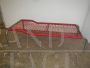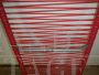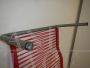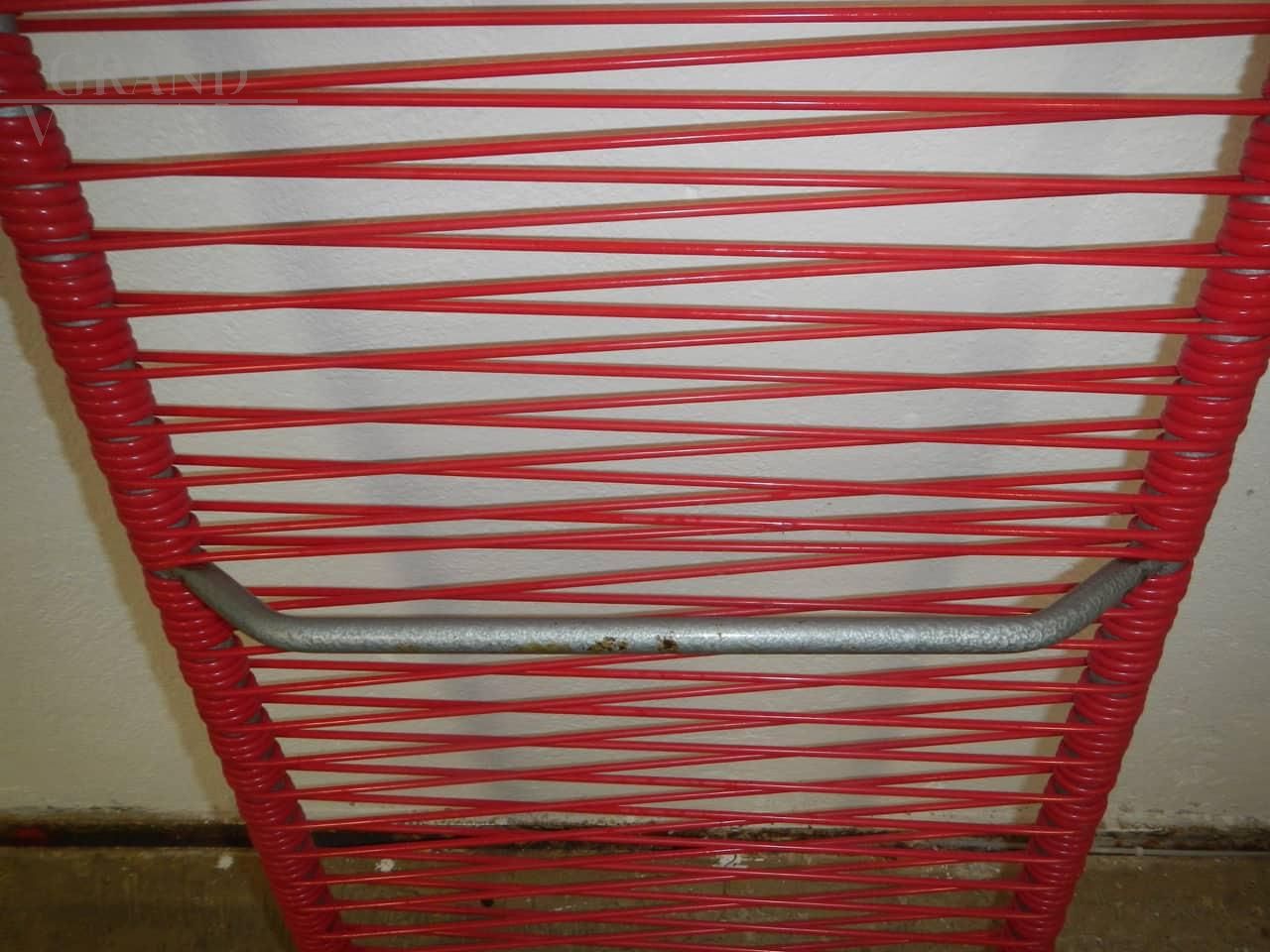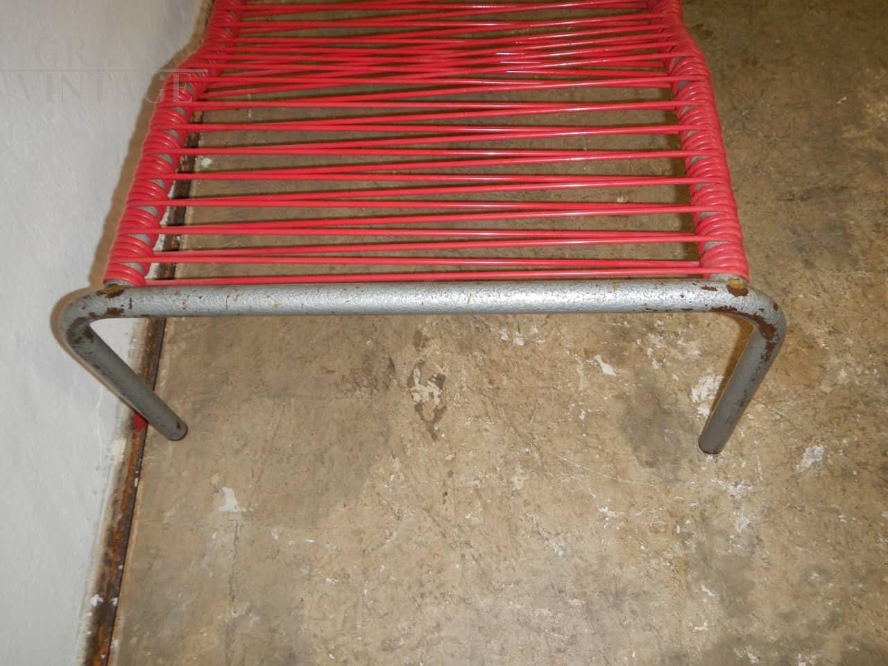 Small vintage outdoor cot, children size, with metal frame and red plastic rope seat, 1970s.
